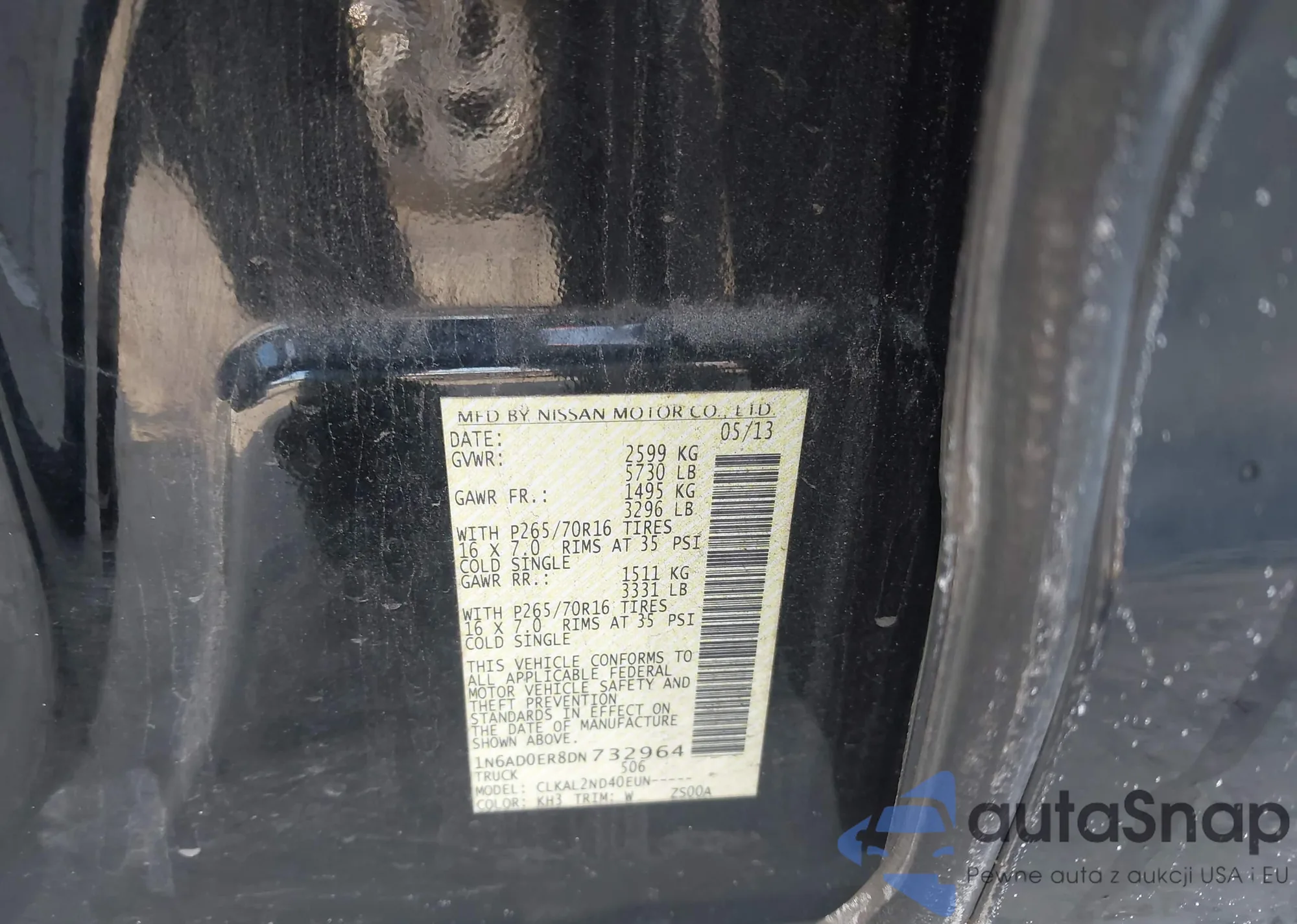 • VIN 1N6AD0ER8DN732964