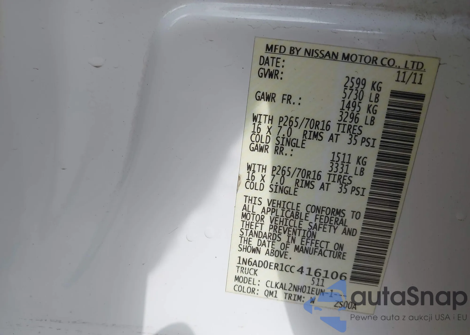 • VIN 1N6AD0ER1CC416106