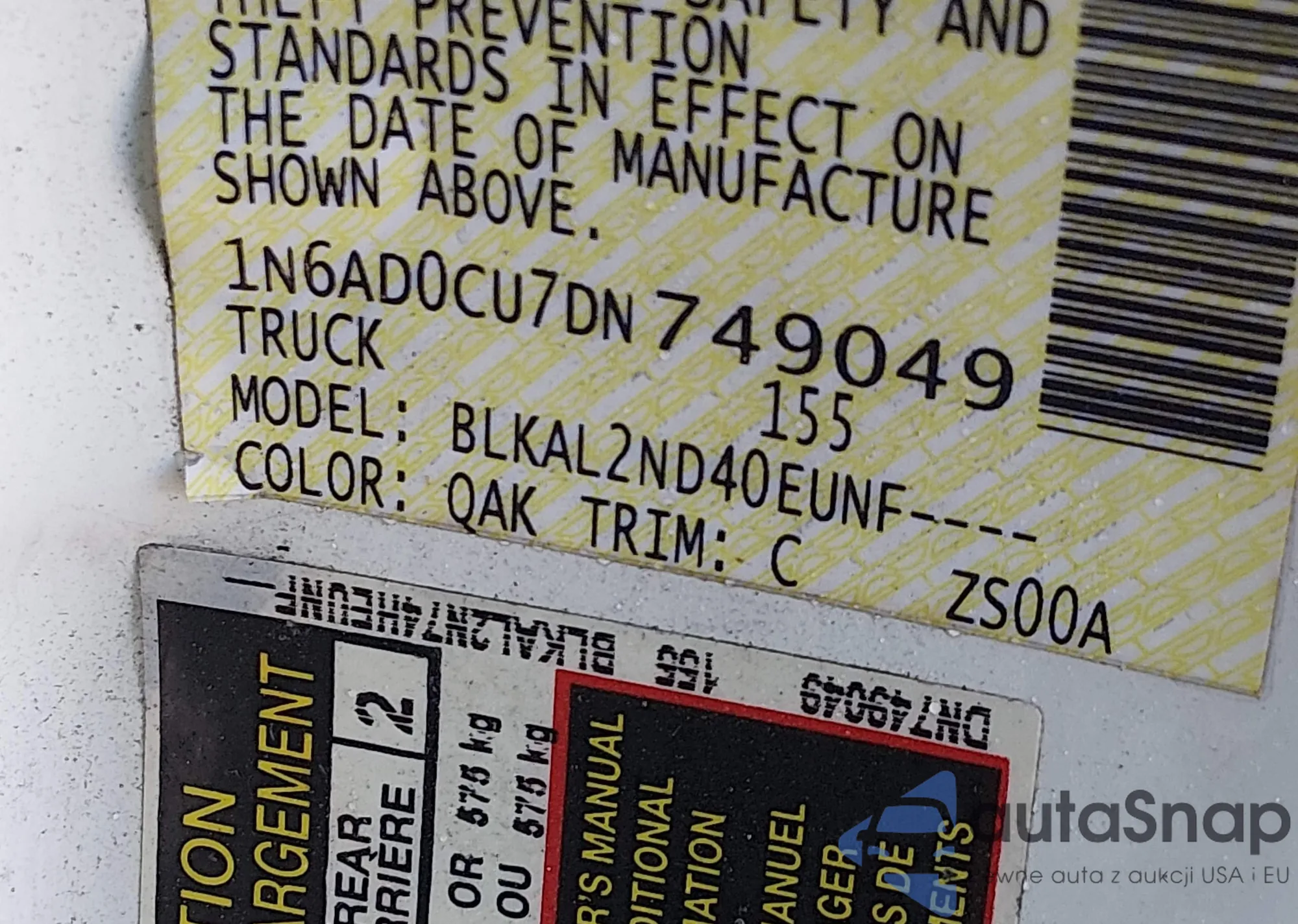 LOT: 44390054 VIN: 1N6AD0CU7DN749049