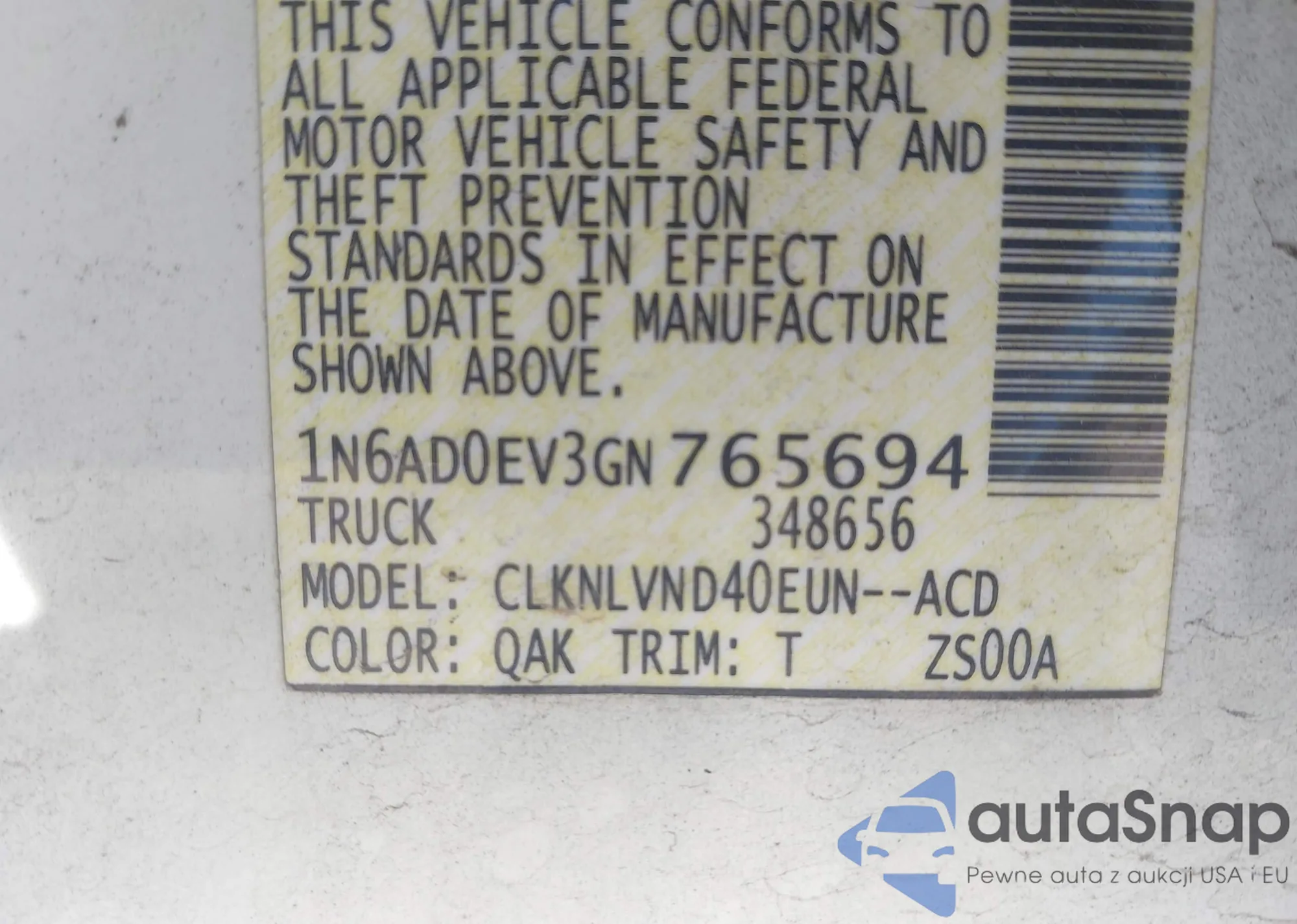 LOT: 44173836 VIN: 1N6AD0EV3GN765694