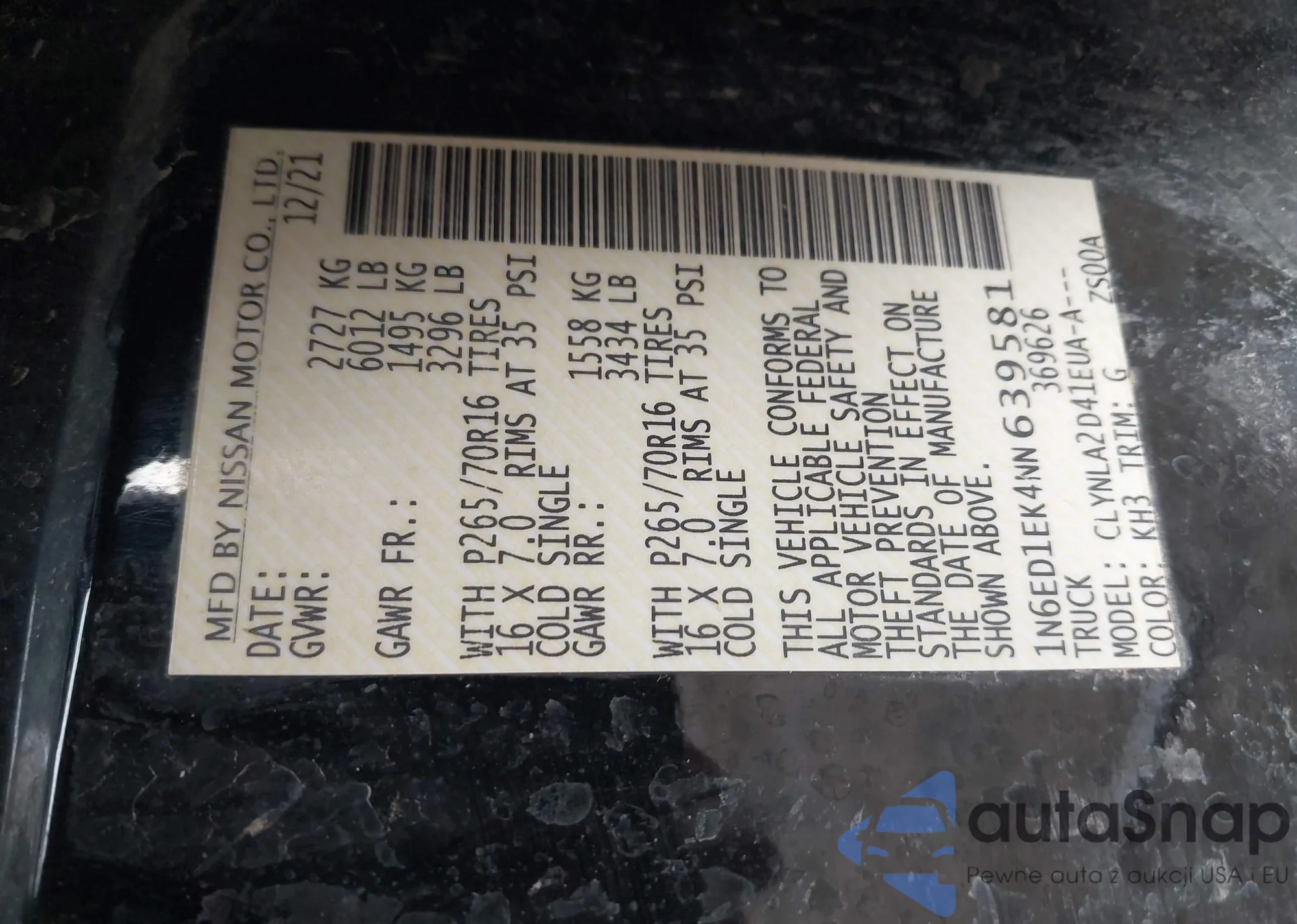 • VIN 1N6ED0EA5MN714322