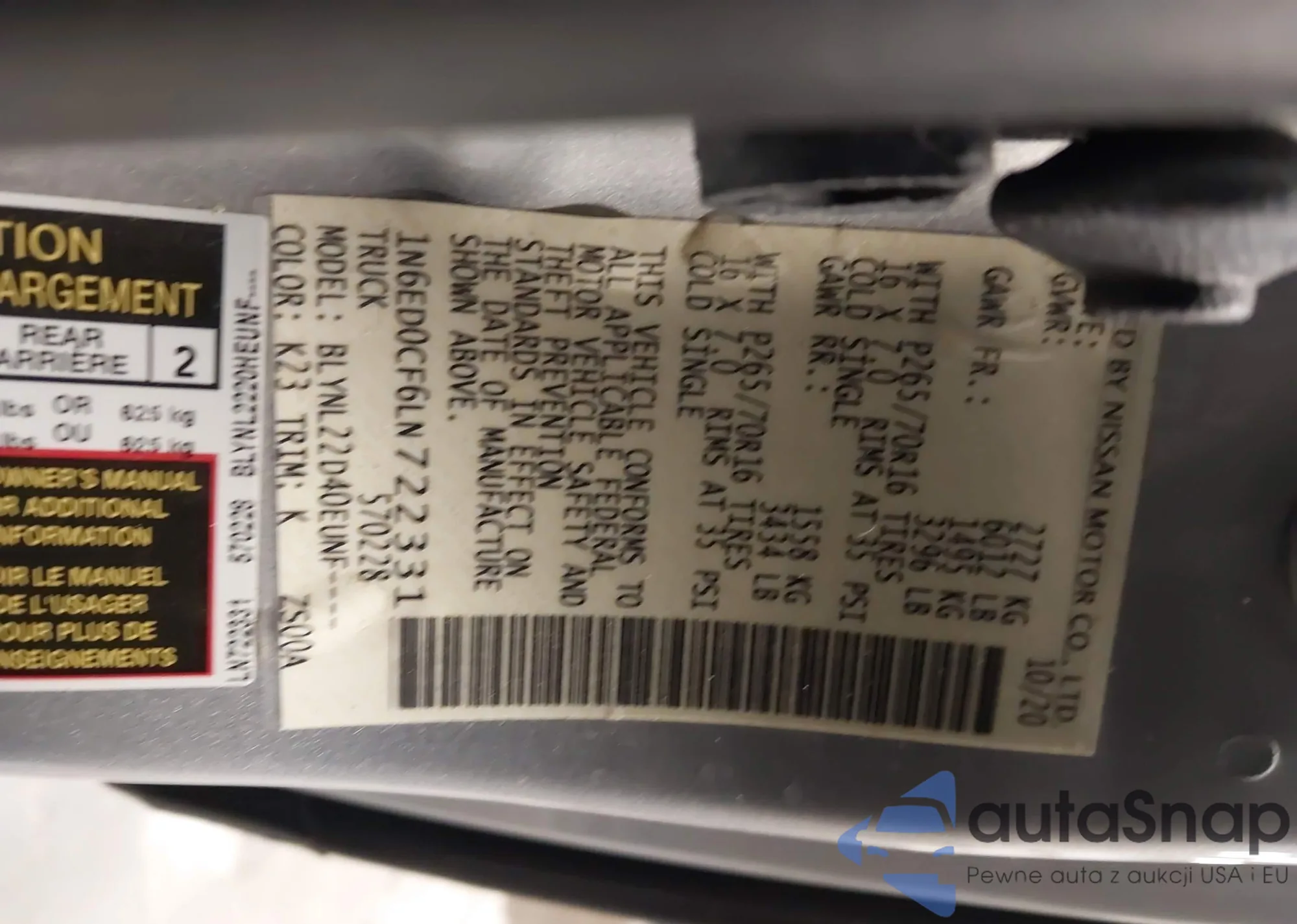• VIN 1N6ED0CF6LN722331