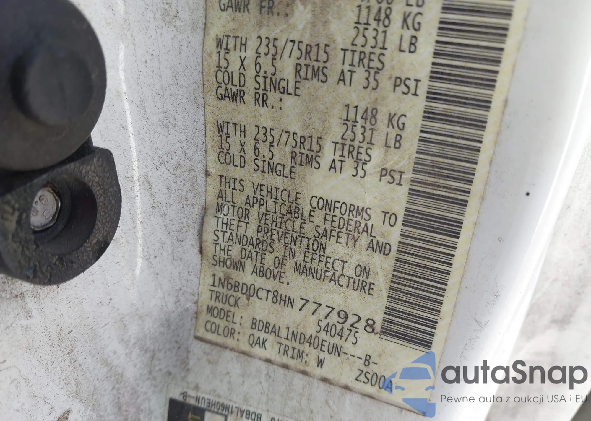 • VIN 1N6BD0CT8HN777928