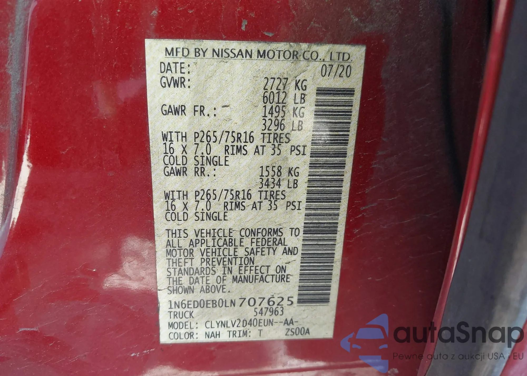 • VIN 1N6ED0EB0LN707625