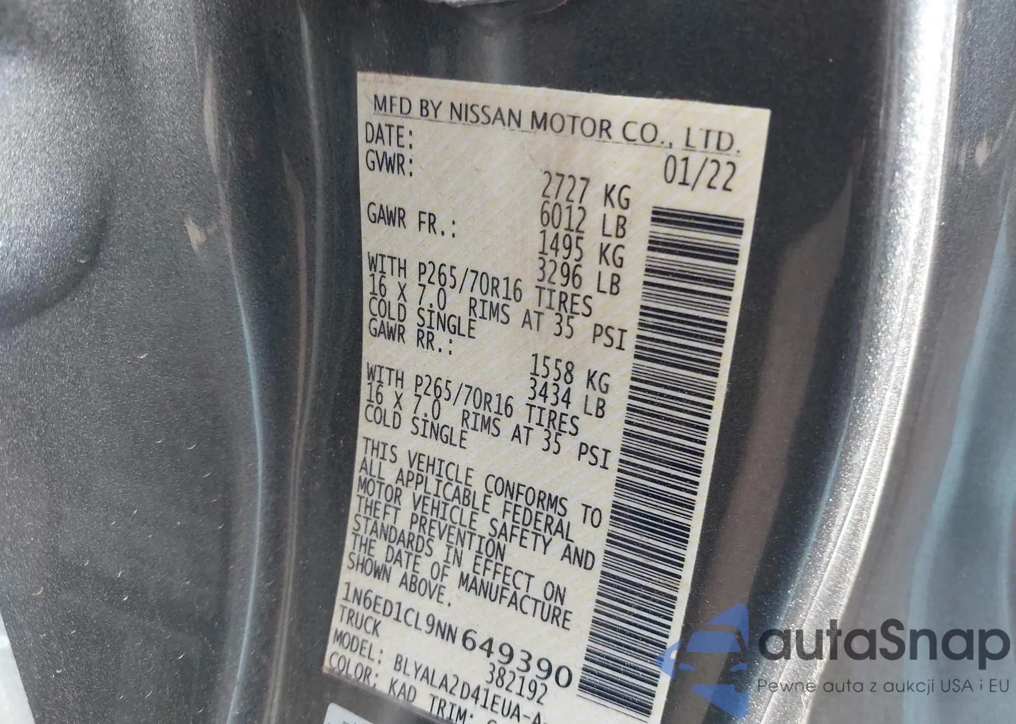 • VIN 1N6ED1CL9NN649390