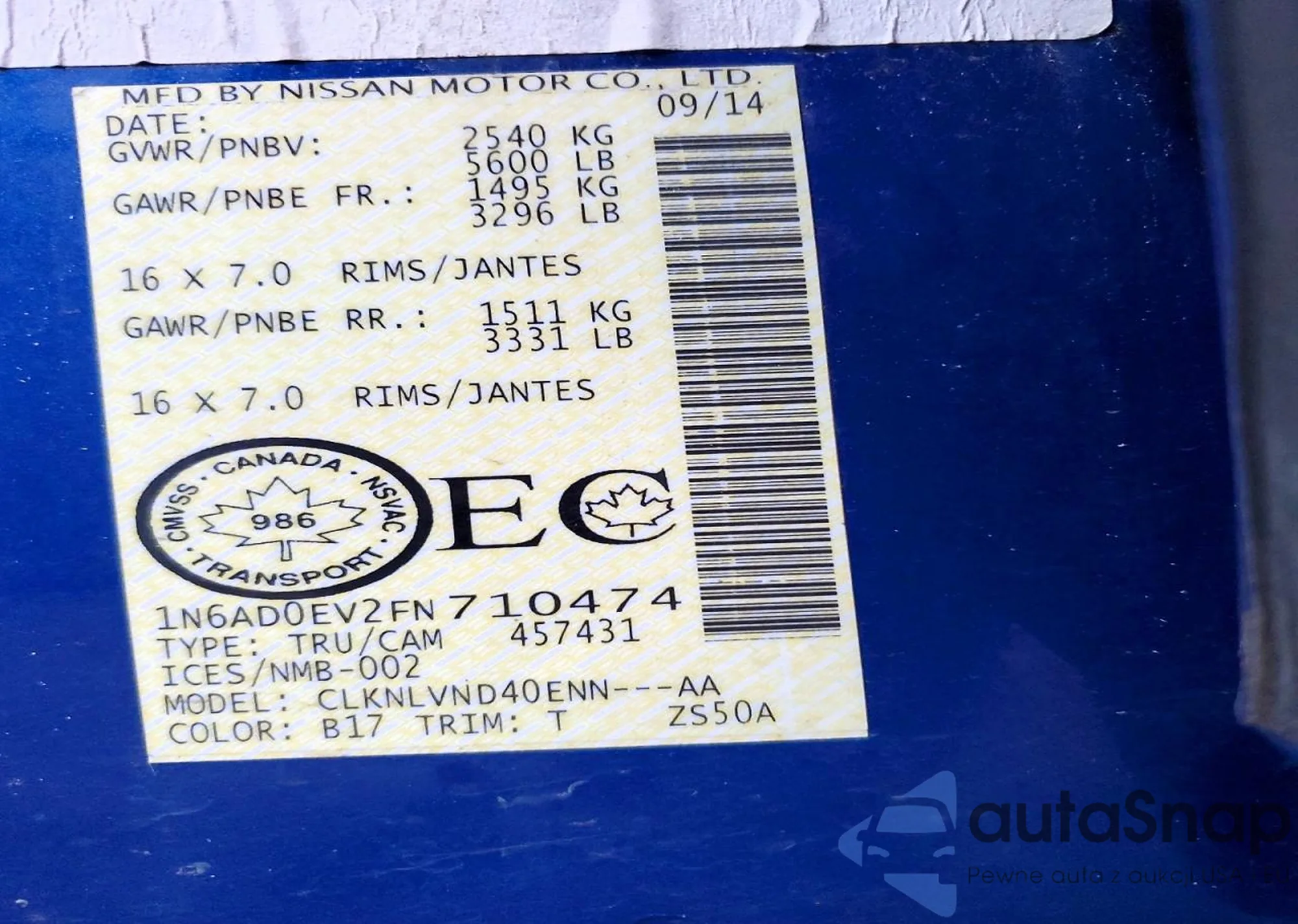 • VIN 1N6AD0EV2FN710474