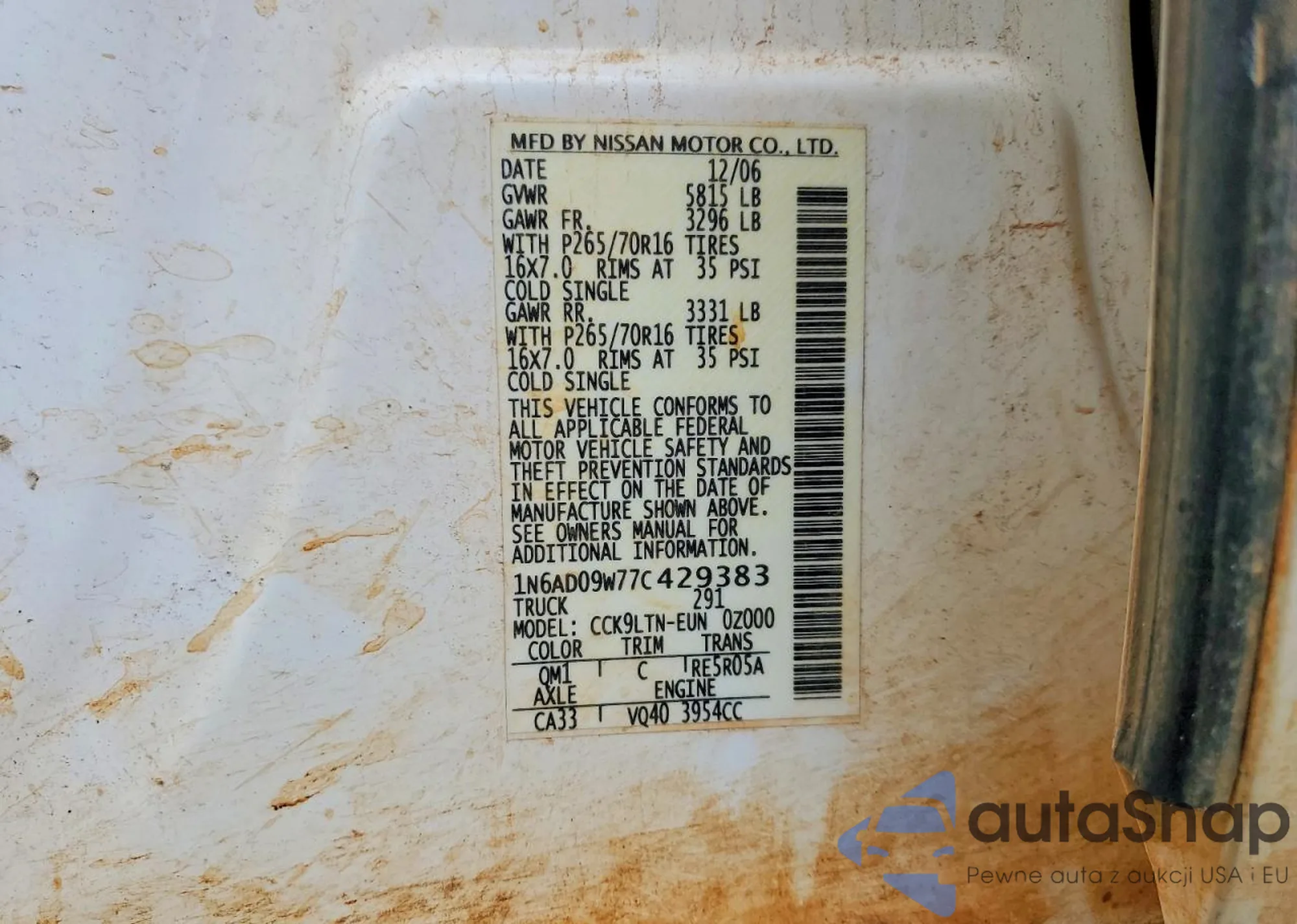 • VIN 1N6AD09W77C429383