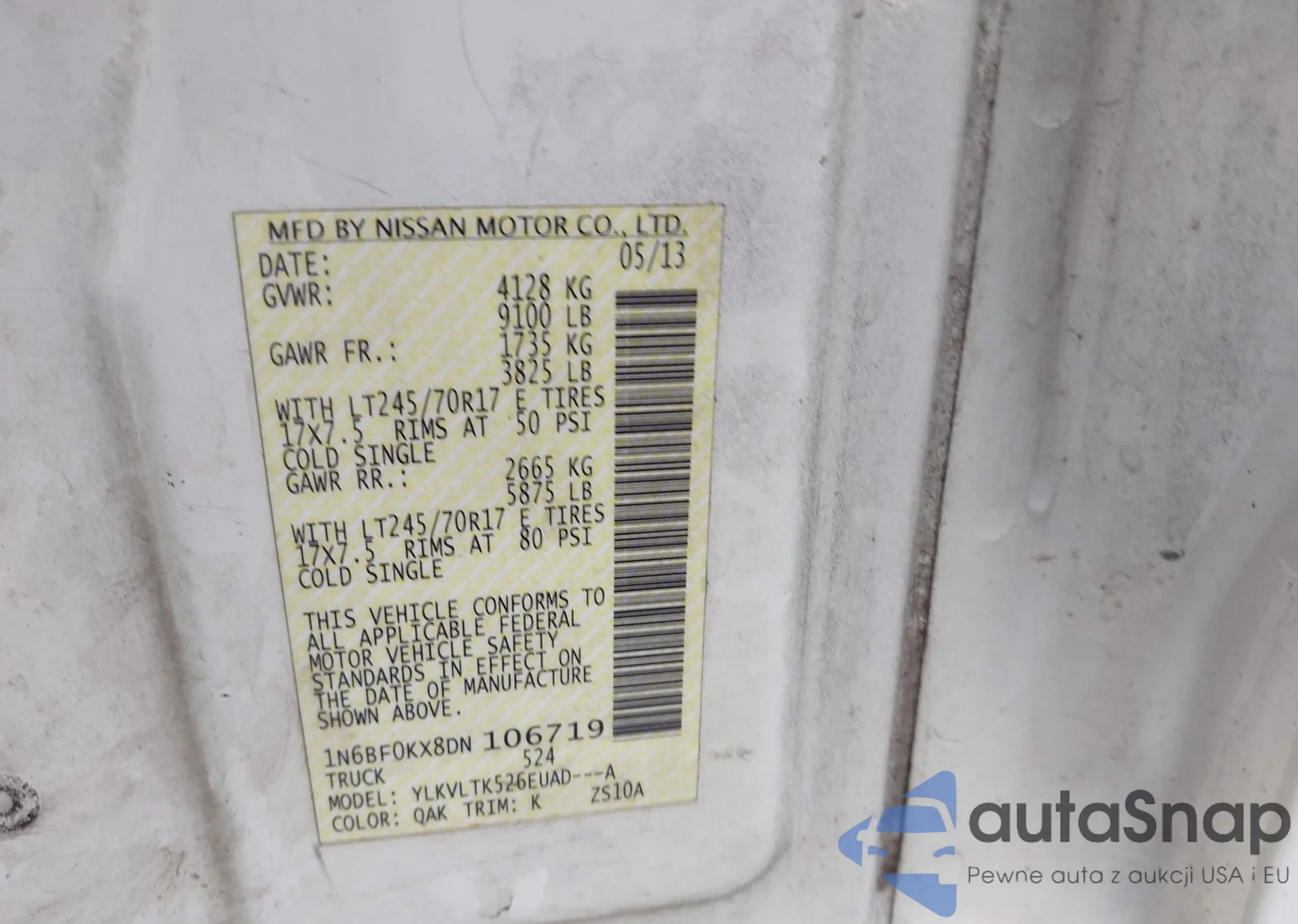 • VIN 1N6BF0LY5DN104420