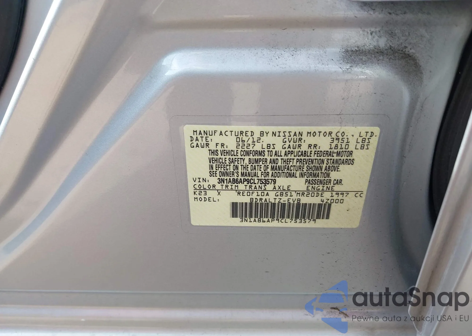 • VIN 3N1AB6AP9CL753579