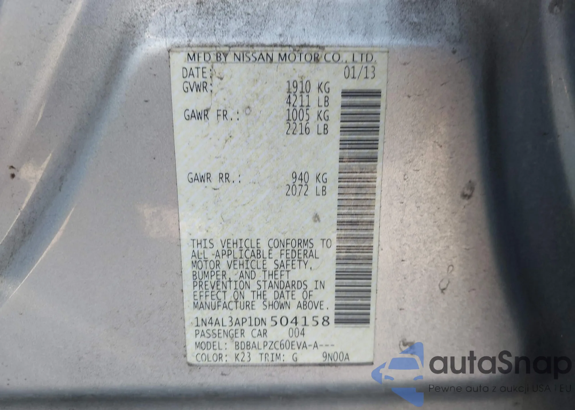 • VIN 1N4AL3AP1DN504158
