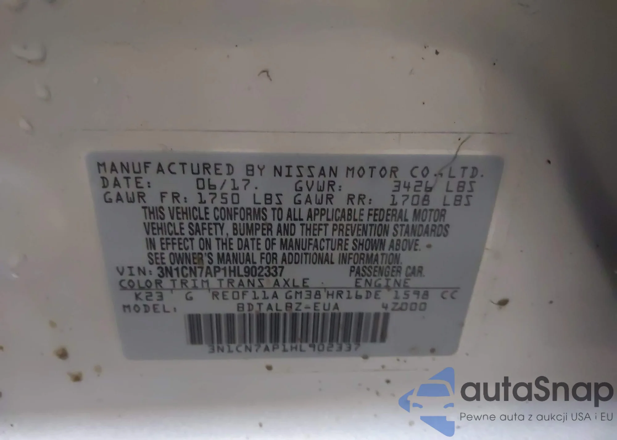 • VIN 3N1CN7AP1HL902337