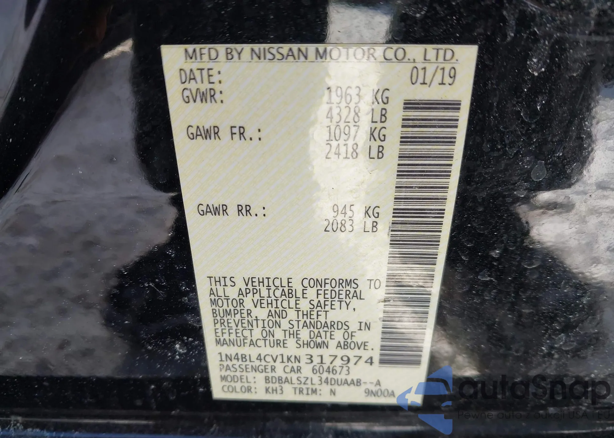 • VIN 1N4BL4CV1KN317974