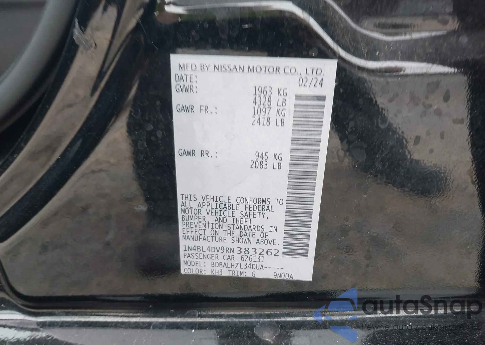 • VIN 1N4BL4DV9RN383262