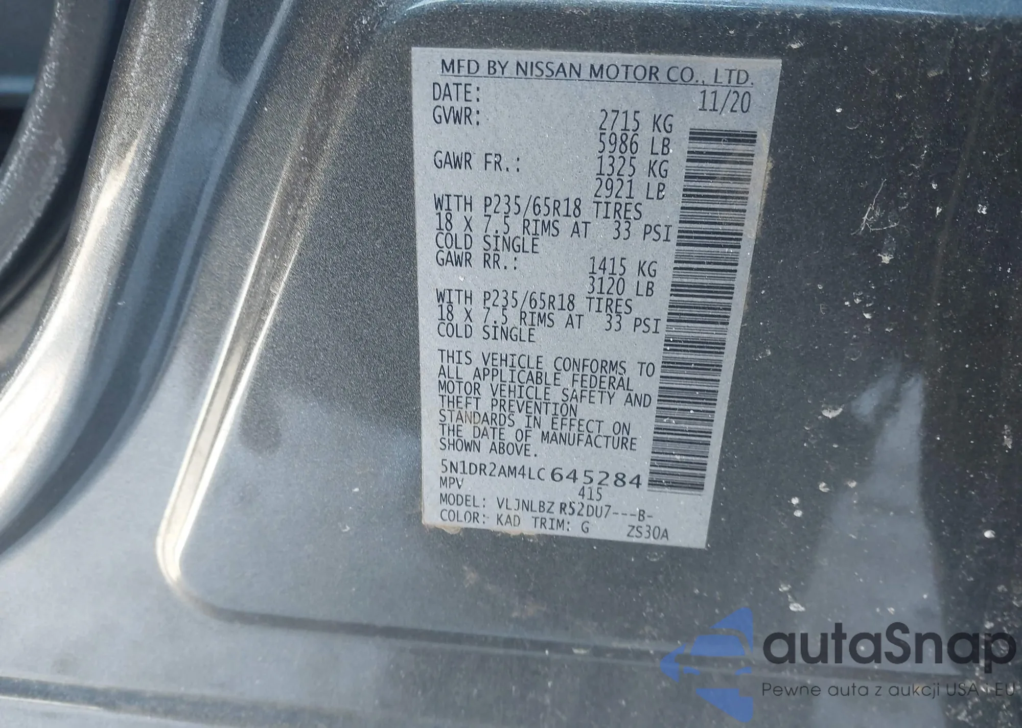 • VIN 5N1DR2AM4LC645284