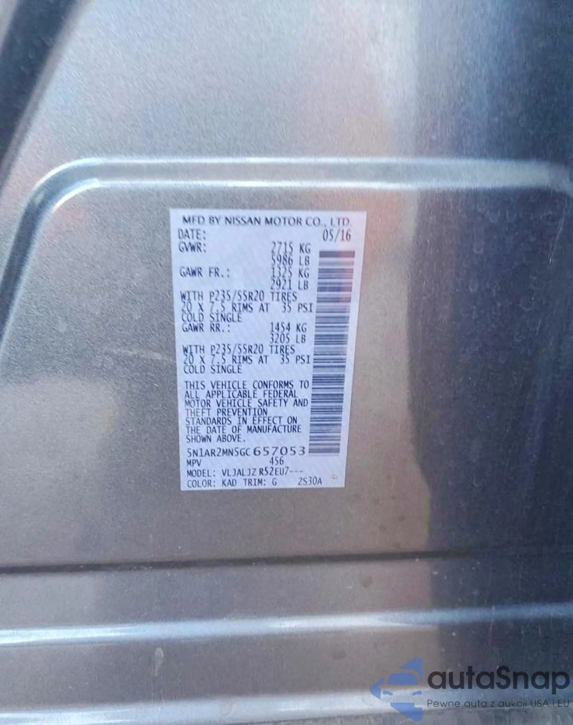 • VIN 5N1AR2MN5GC657053