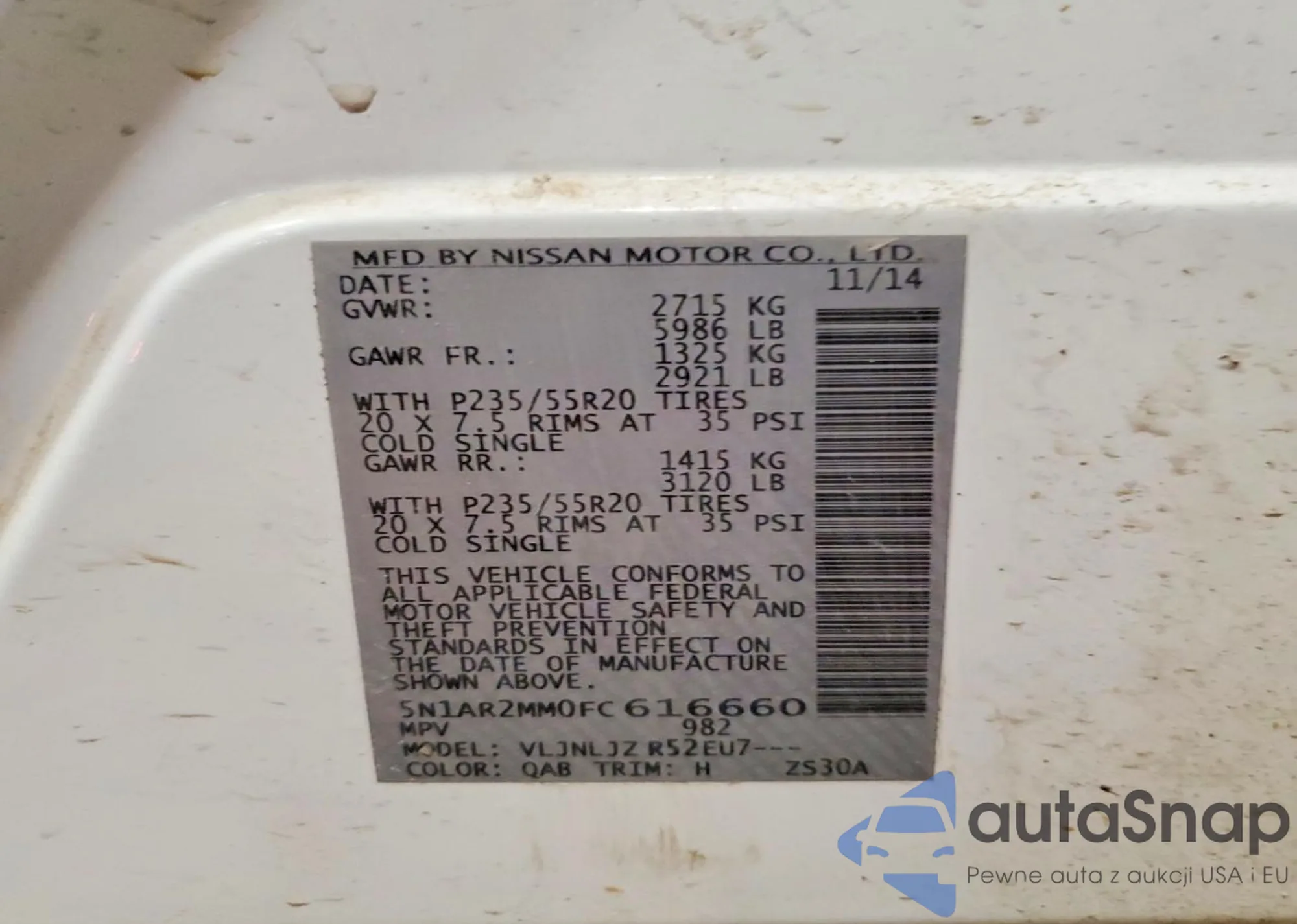 LOT: 98235535 VIN: 5N1AR2MM4FC682998