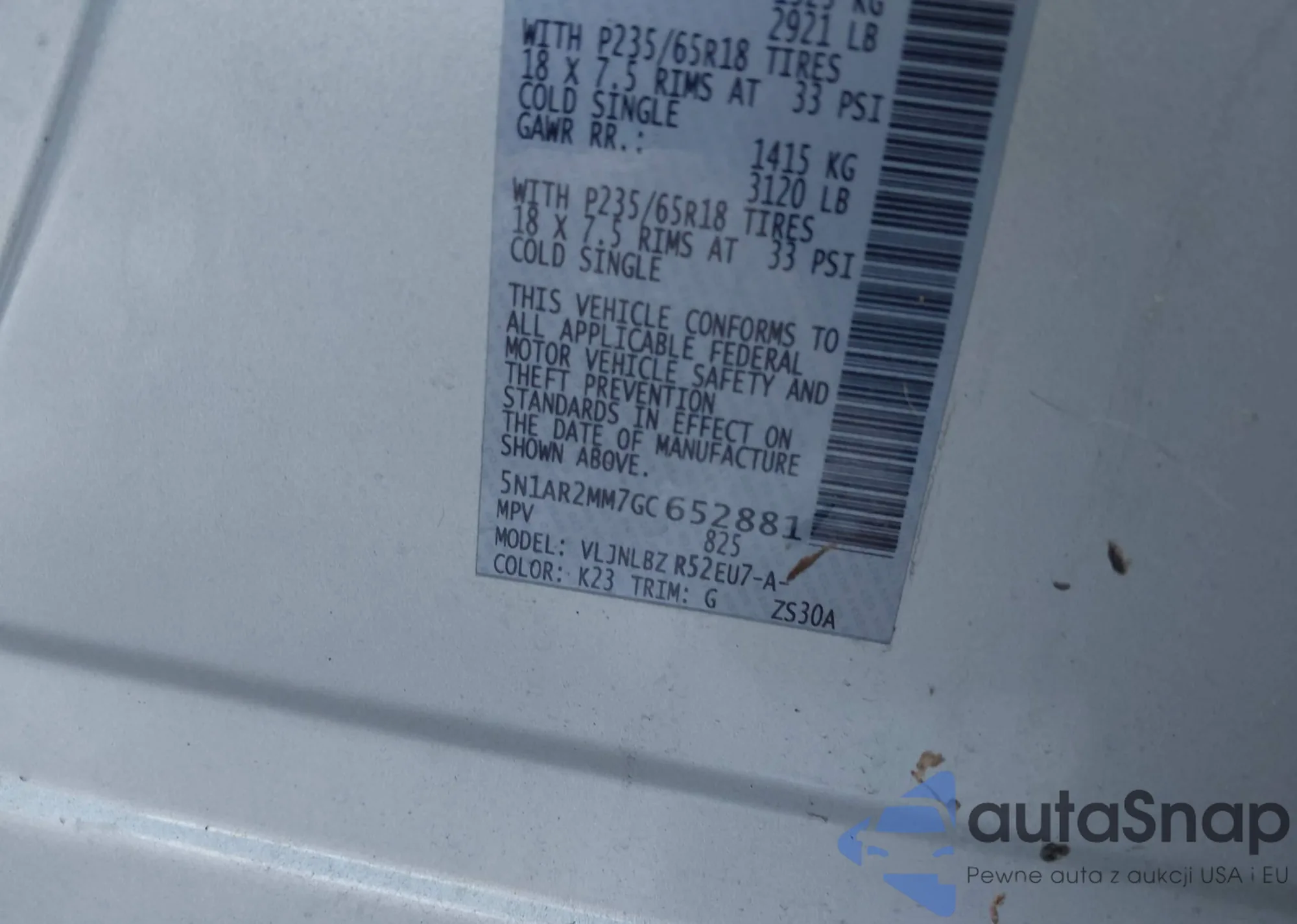 • VIN 5N1AR2MM7GC652881