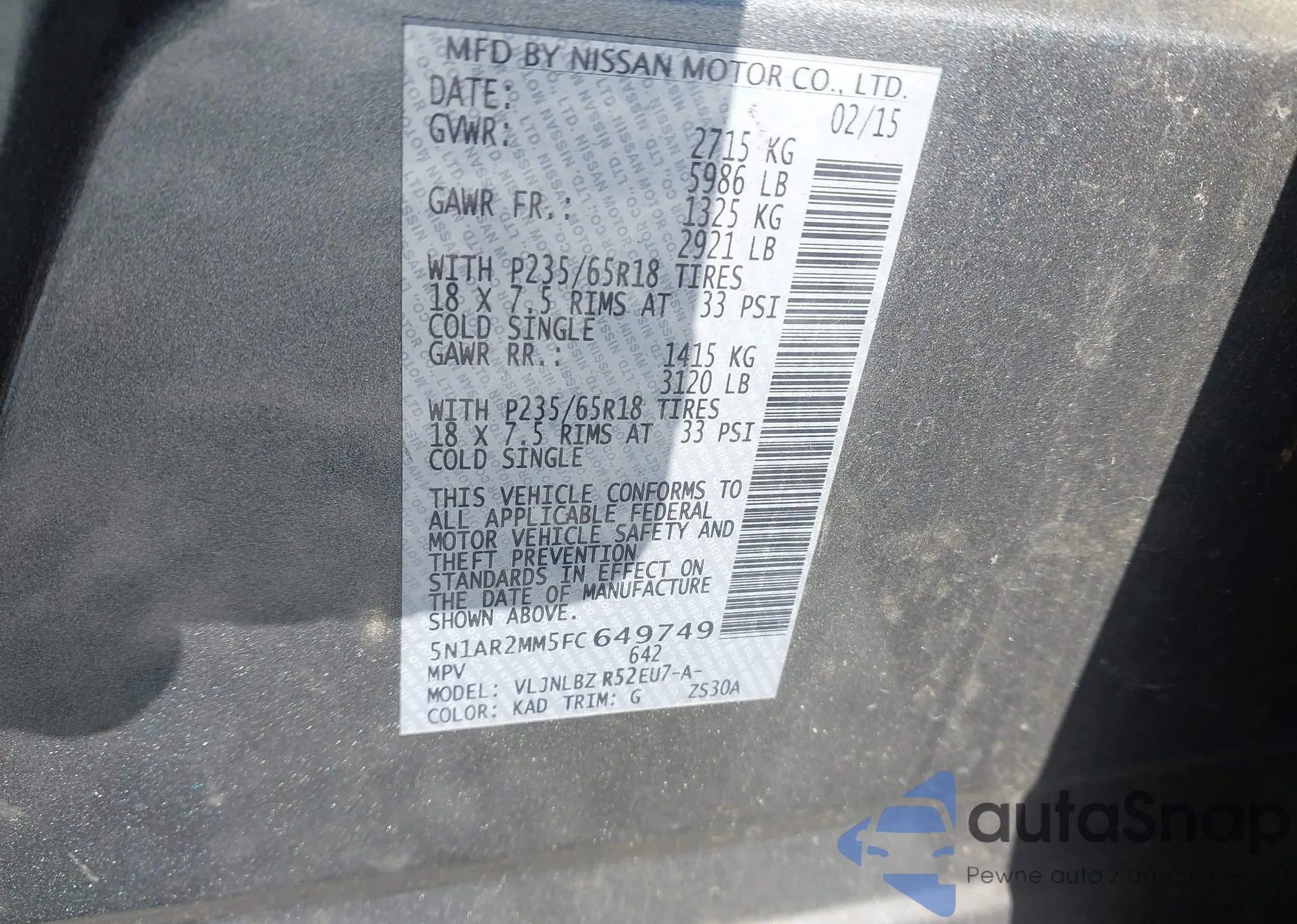 • VIN 5N1AR2MM5FC649749
