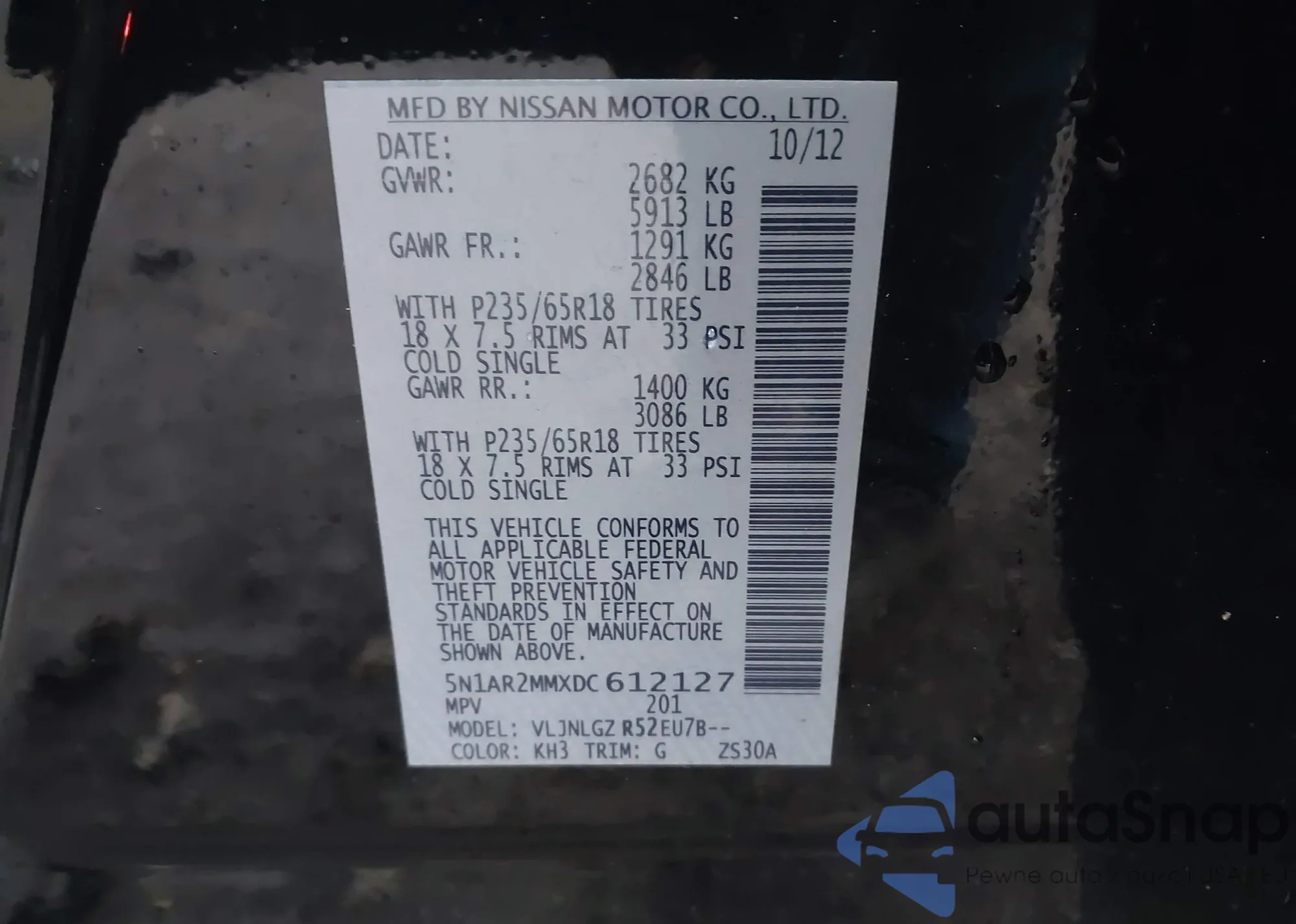 • VIN 5N1AR2MMXDC612127