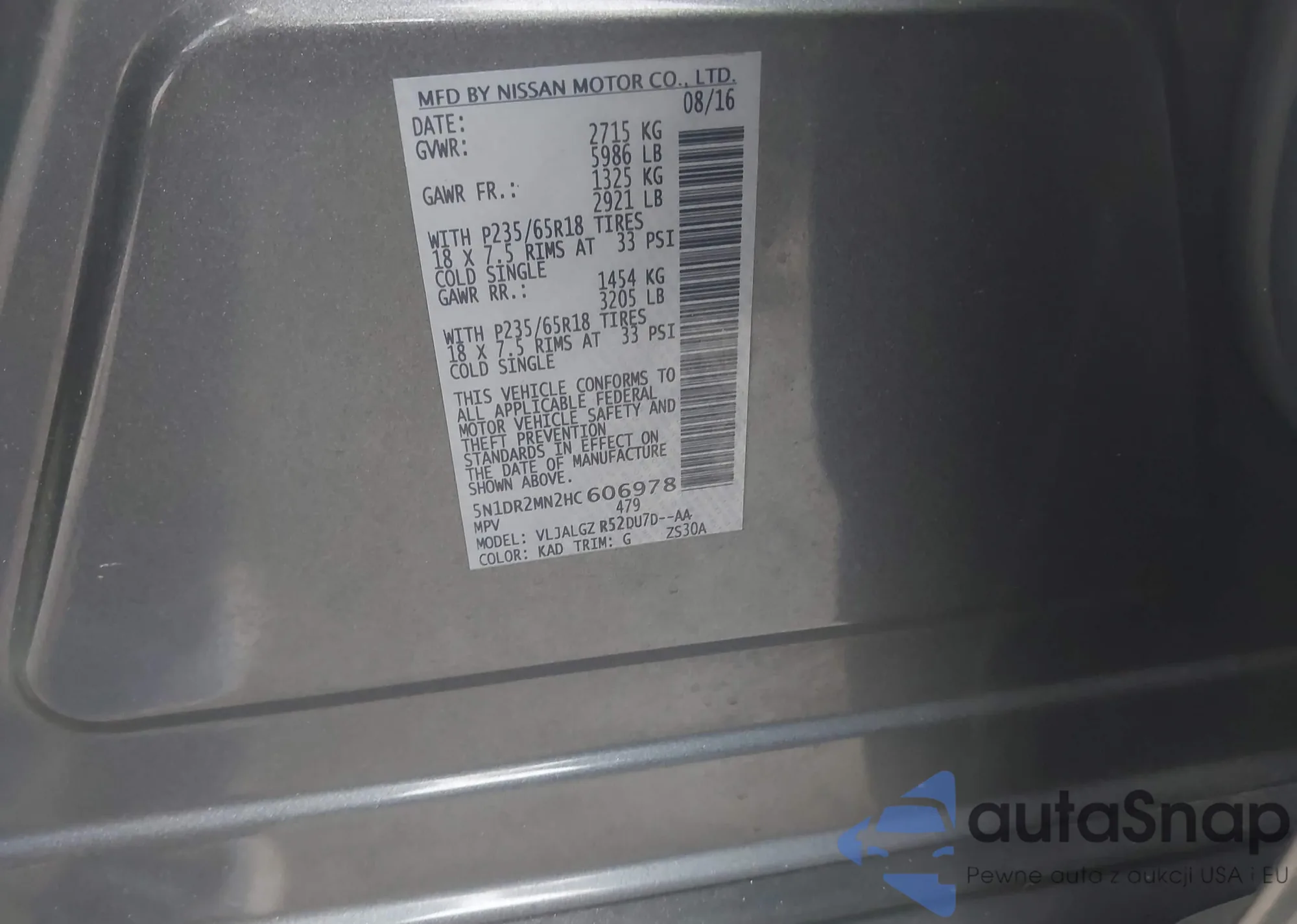 LOT: 43942276 VIN: 5N1DR2MN2HC606978
