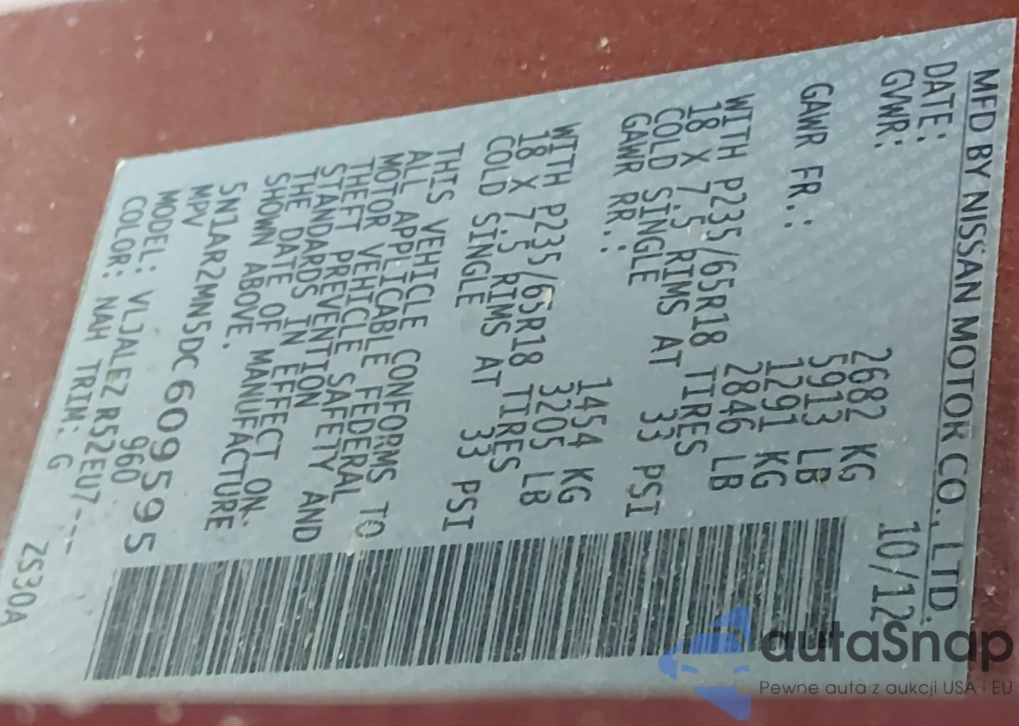 • VIN 5N1AR2MN5DC609595