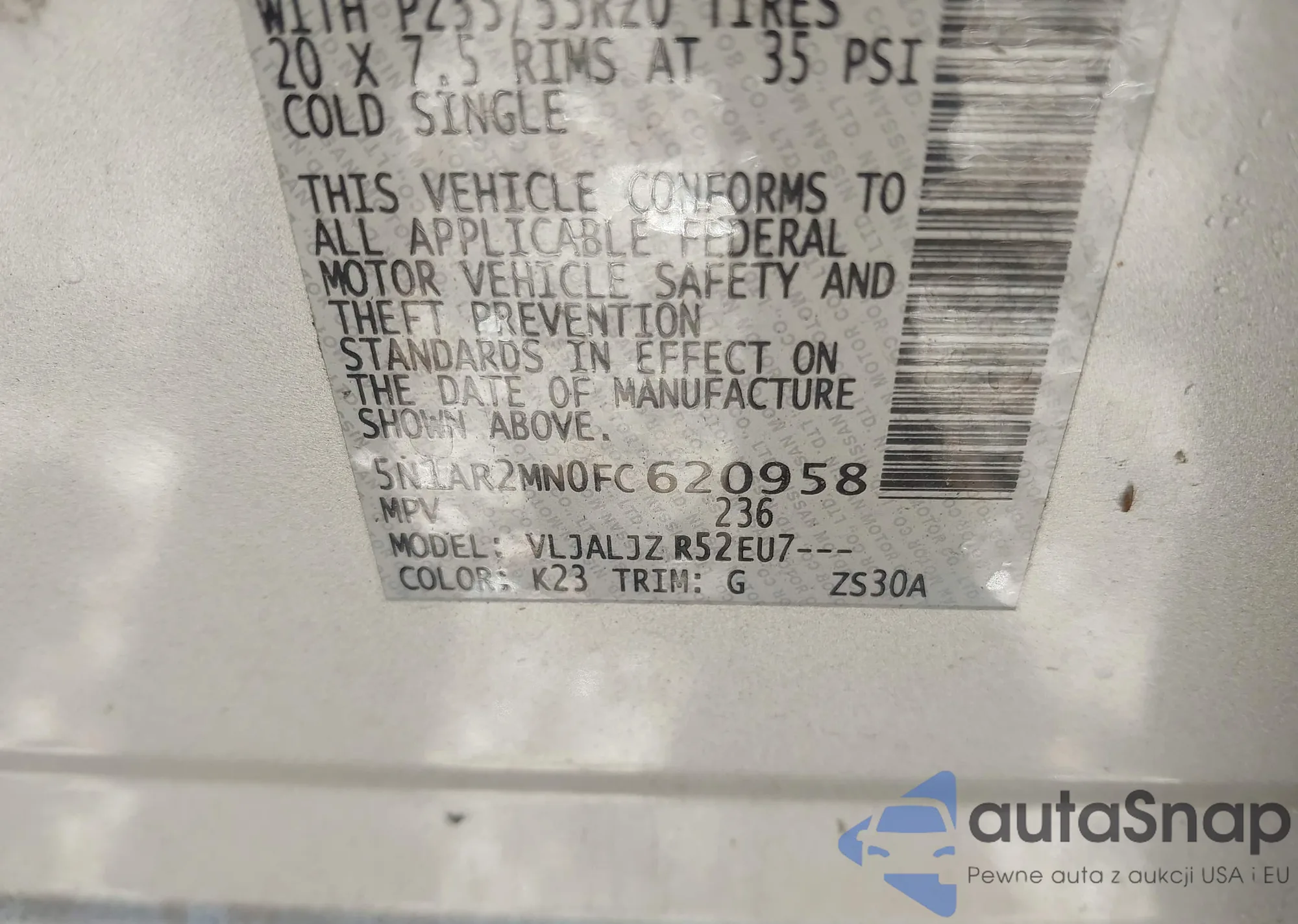 • VIN 5N1AR2MN0FC620958