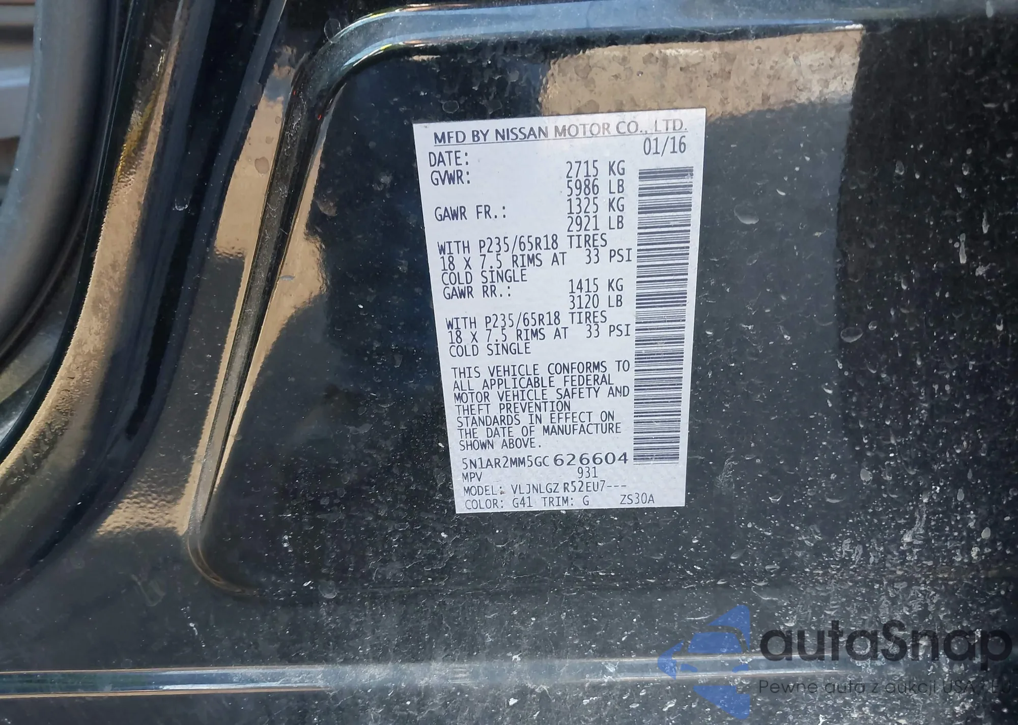 LOT: 44278138 VIN: 5N1AR2MM5GC626604