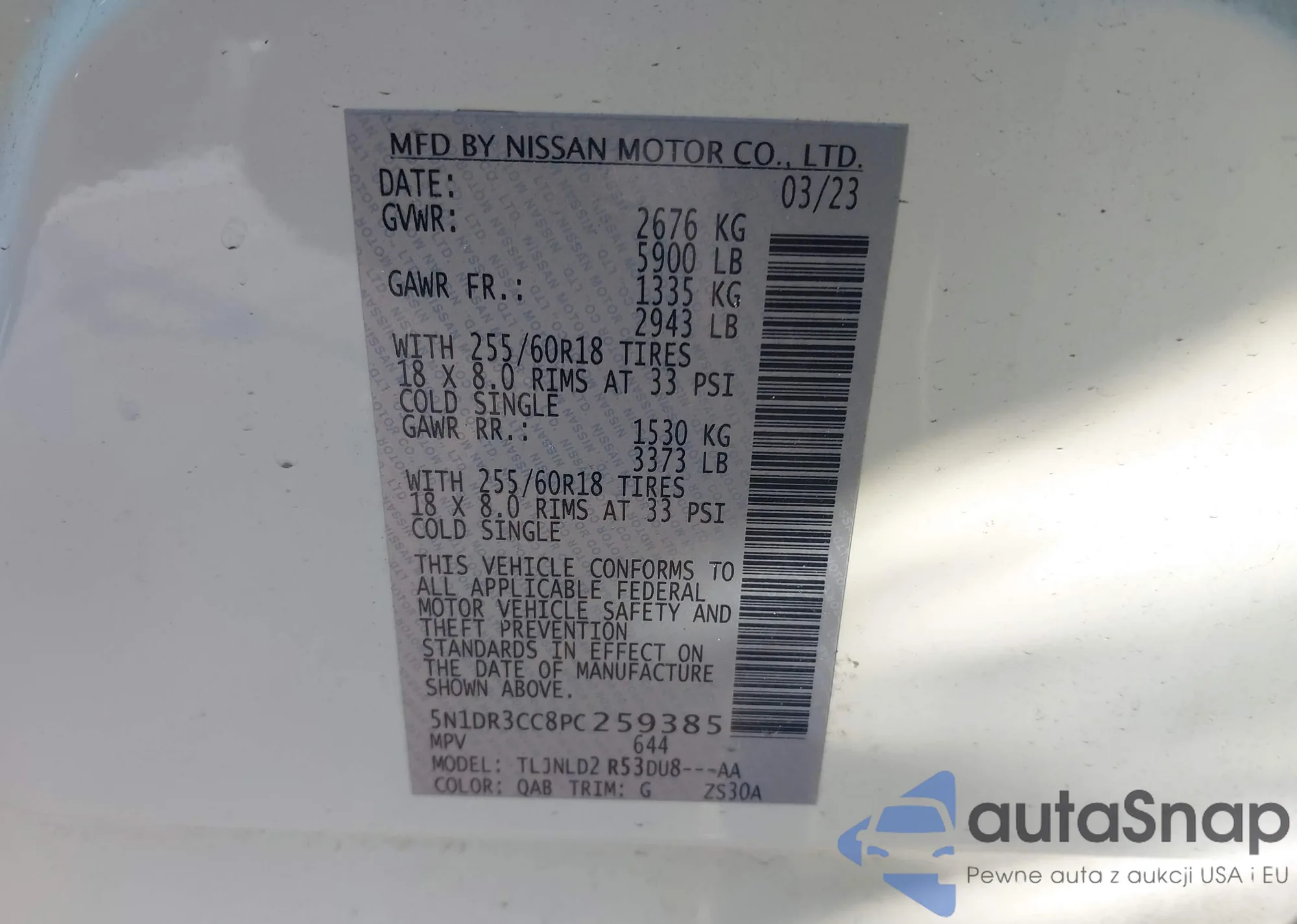 LOT: 44317070 VIN: 5N1DR3CC8PC259385