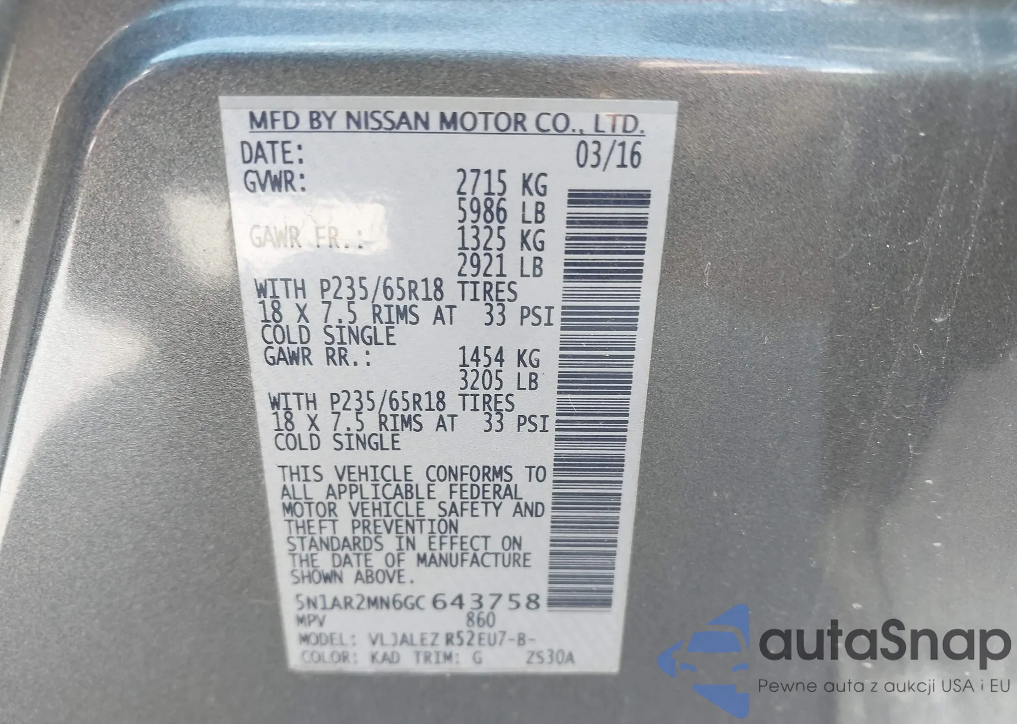 • VIN 5N1AR2MN6GC643758