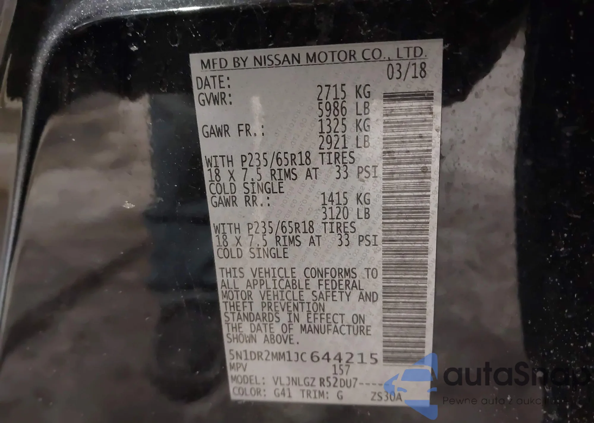 LOT: 44368862 VIN: 5N1DR2MN0JC645459