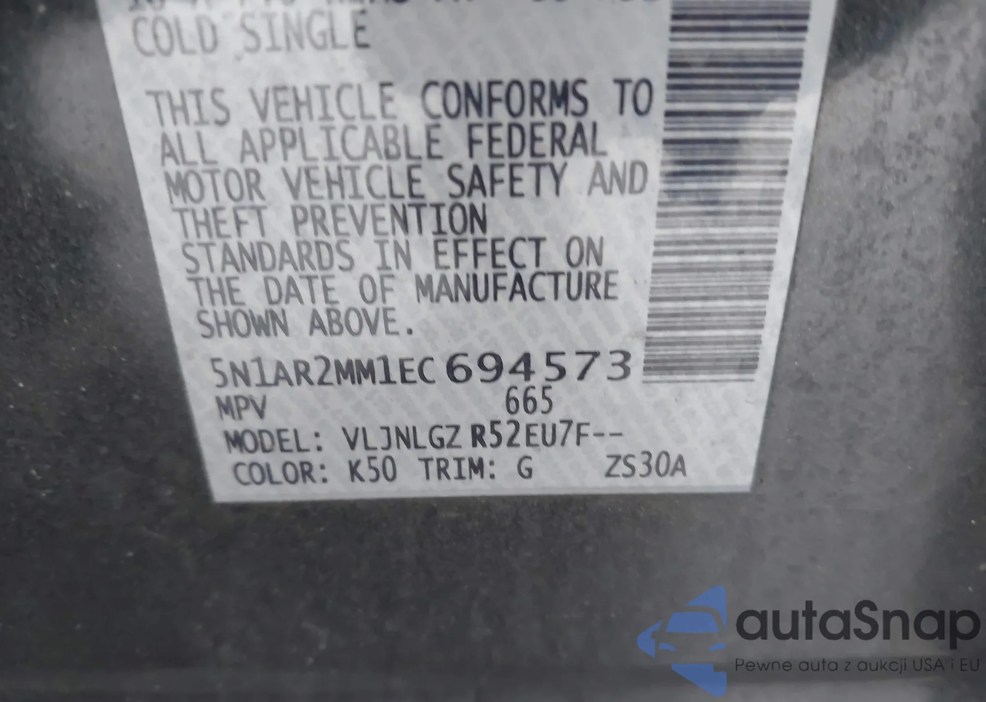 • VIN 5N1AR2MM1EC694573