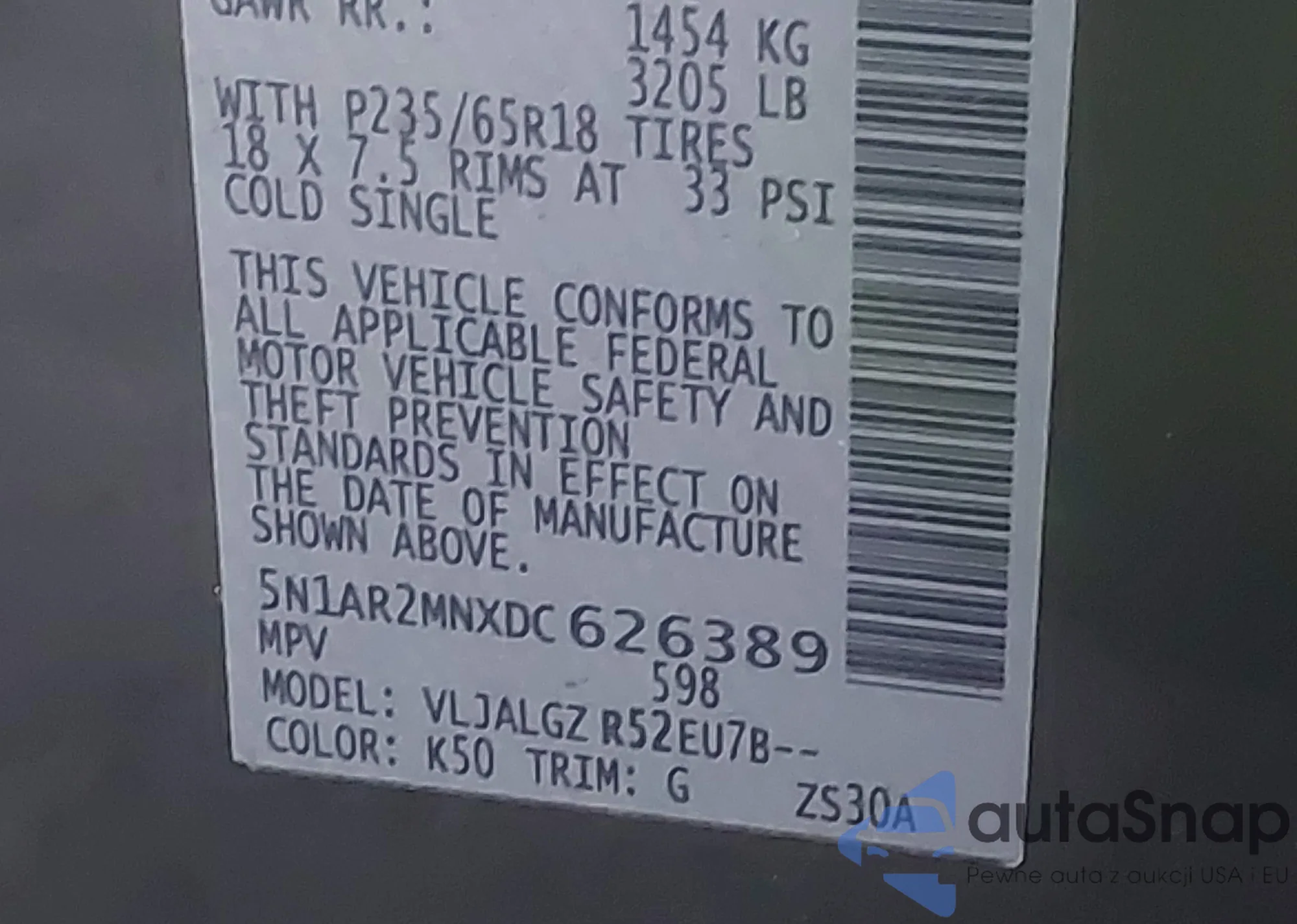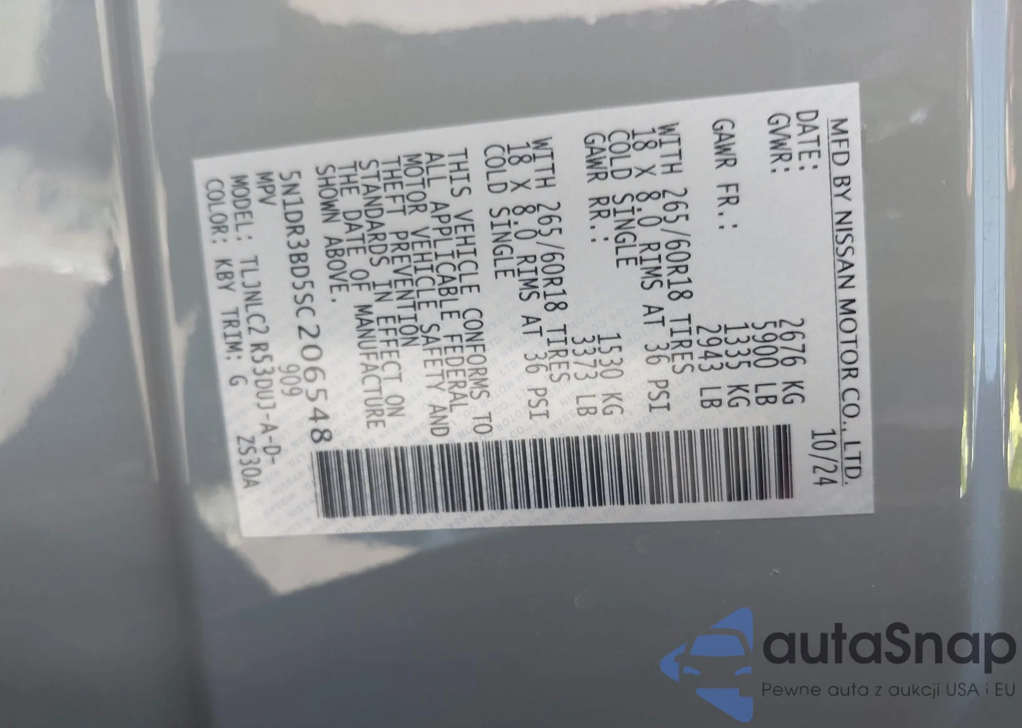 • VIN 5N1DR3BD5SC206548