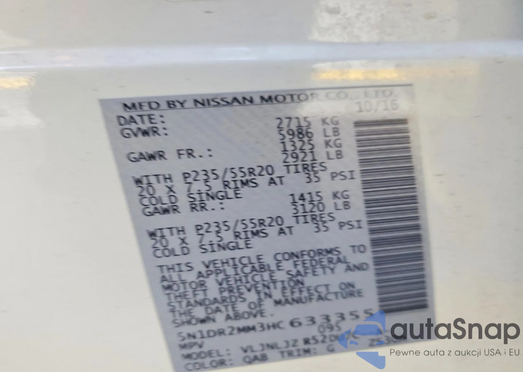 • VIN 5N1DR2MM3HC633355
