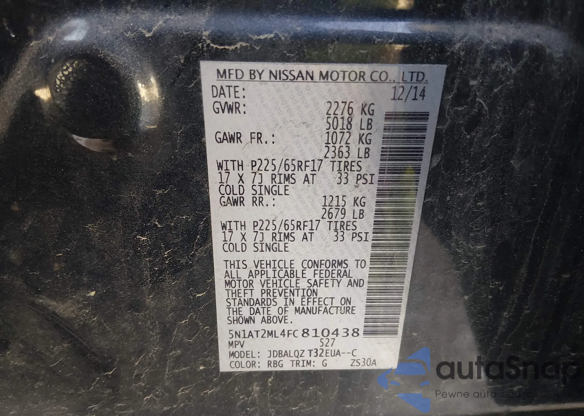 LOT: 44195036 VIN: 5N1AT2ML4FC810438
