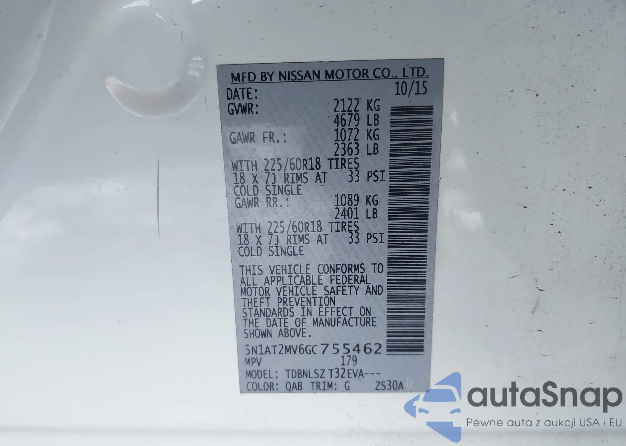 LOT: 44170946 VIN: JN8AT2MT4GW018542