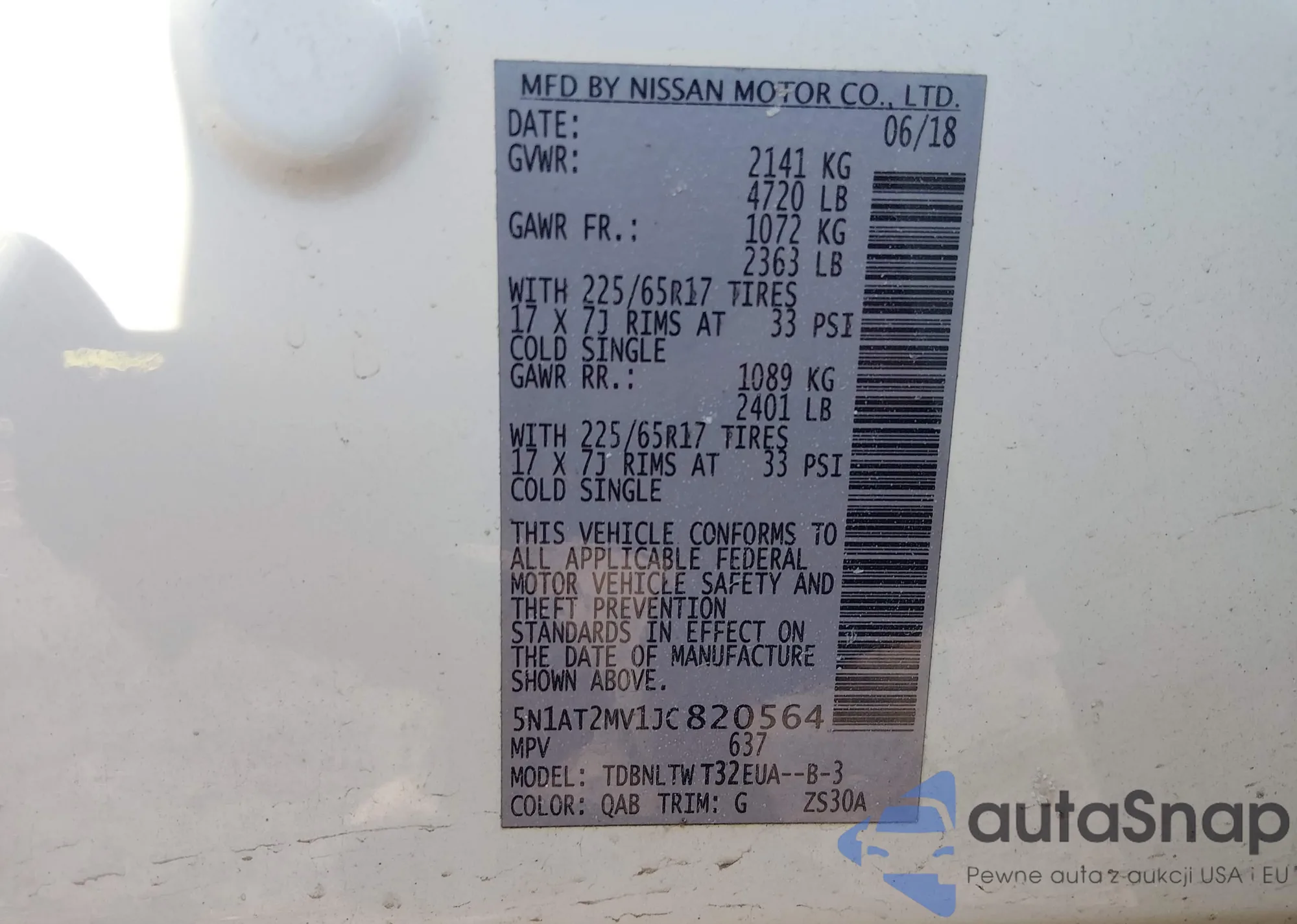 LOT: 44337533 VIN: 5N1AT2MT4JC836210