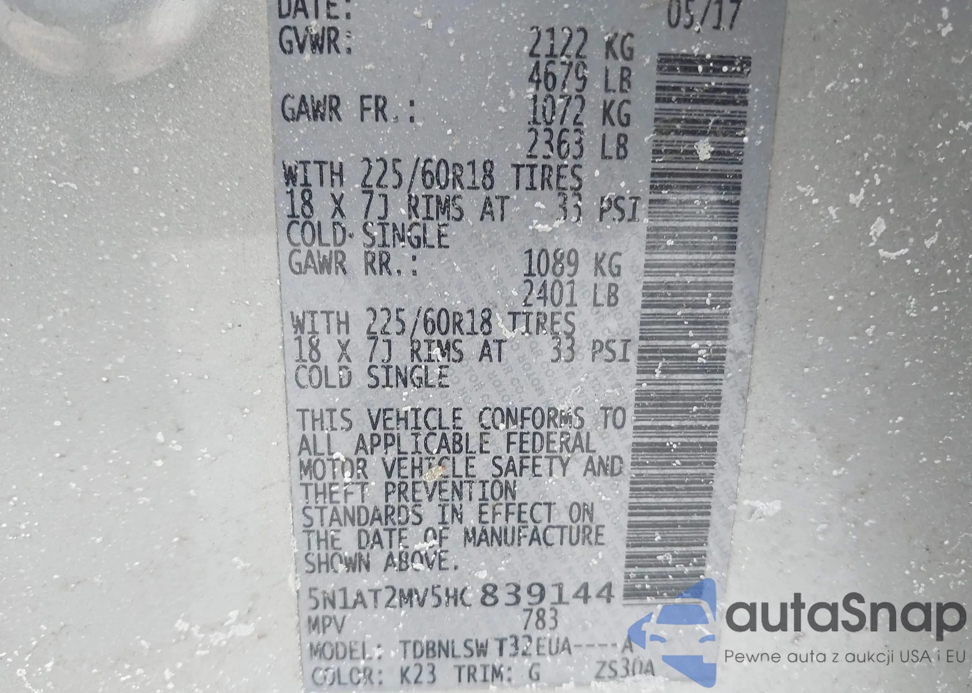 • VIN 5N1AT2MV5HC839144