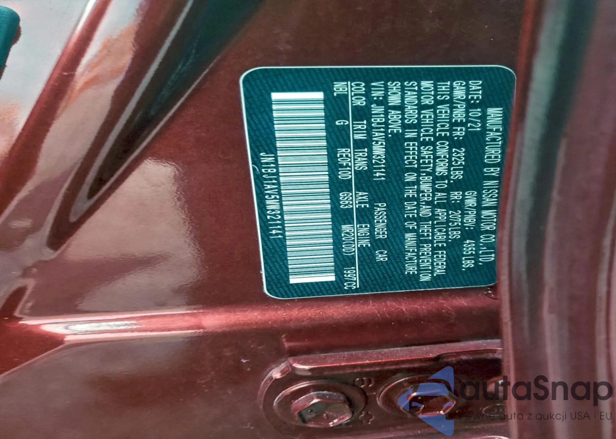 LOT: 94137445 VIN: JN1BJ1AV5MW321141