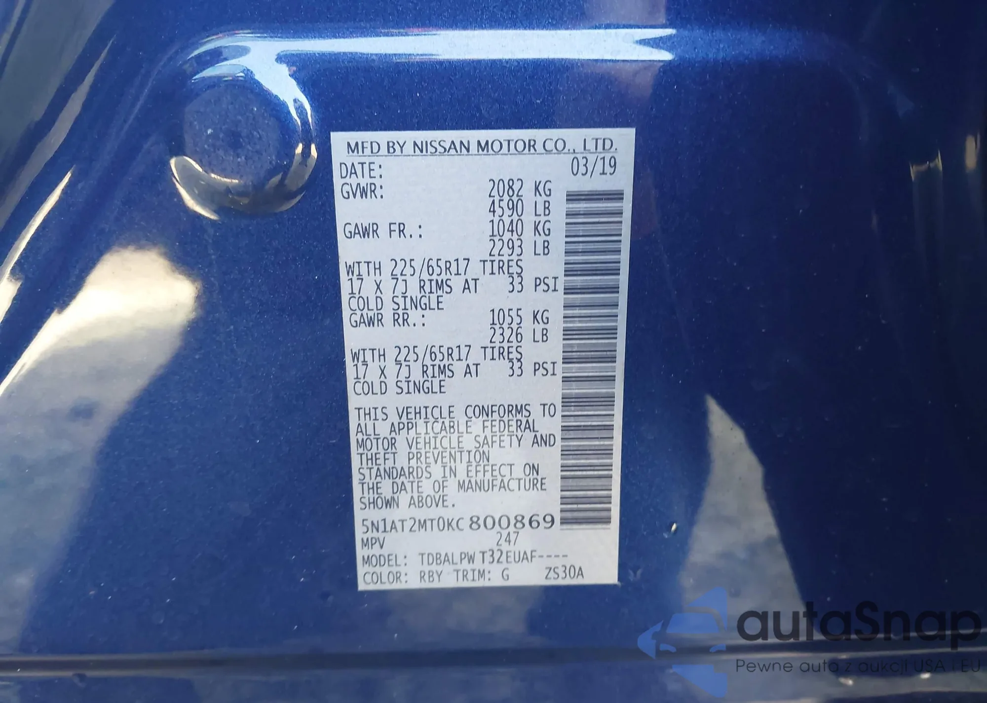 LOT: 44333303 VIN: 5N1AT2MT0KC800869