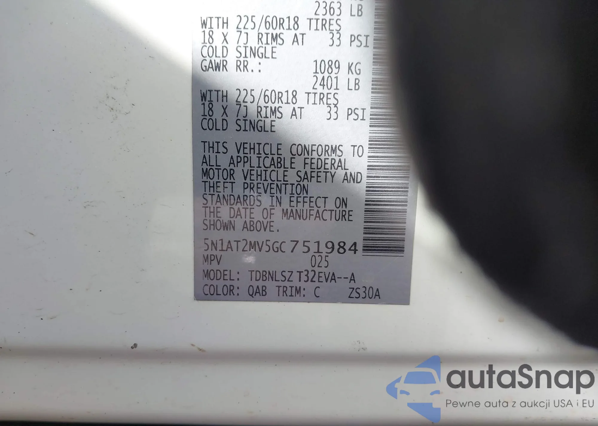 LOT: 43995044 VIN: JN8AT2MT0JW487473