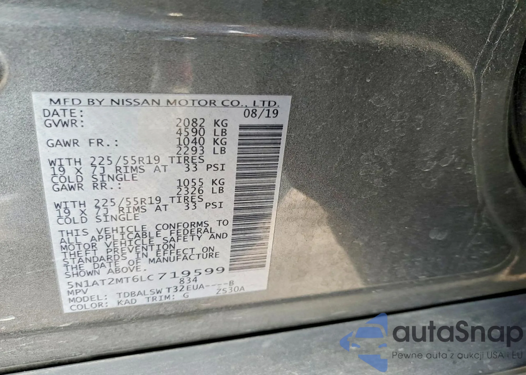 LOT: 75821655 VIN: 5N1AT2MT6LC719599