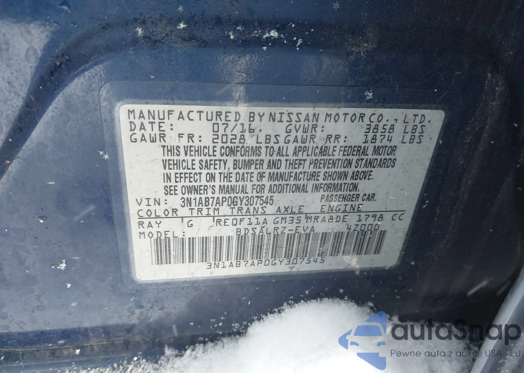 • VIN 3N1AB7AP0GY307545