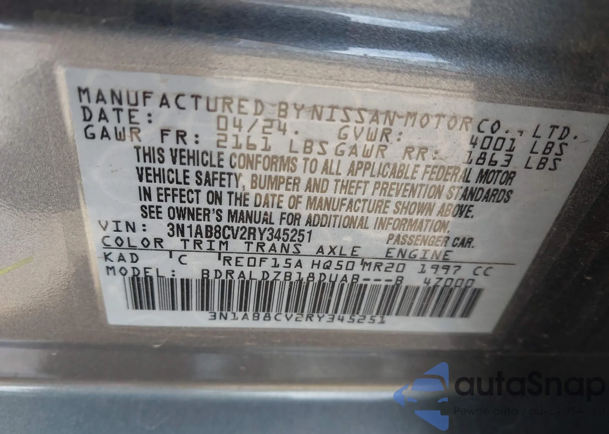 • VIN 3N1AB8CV2RY345251