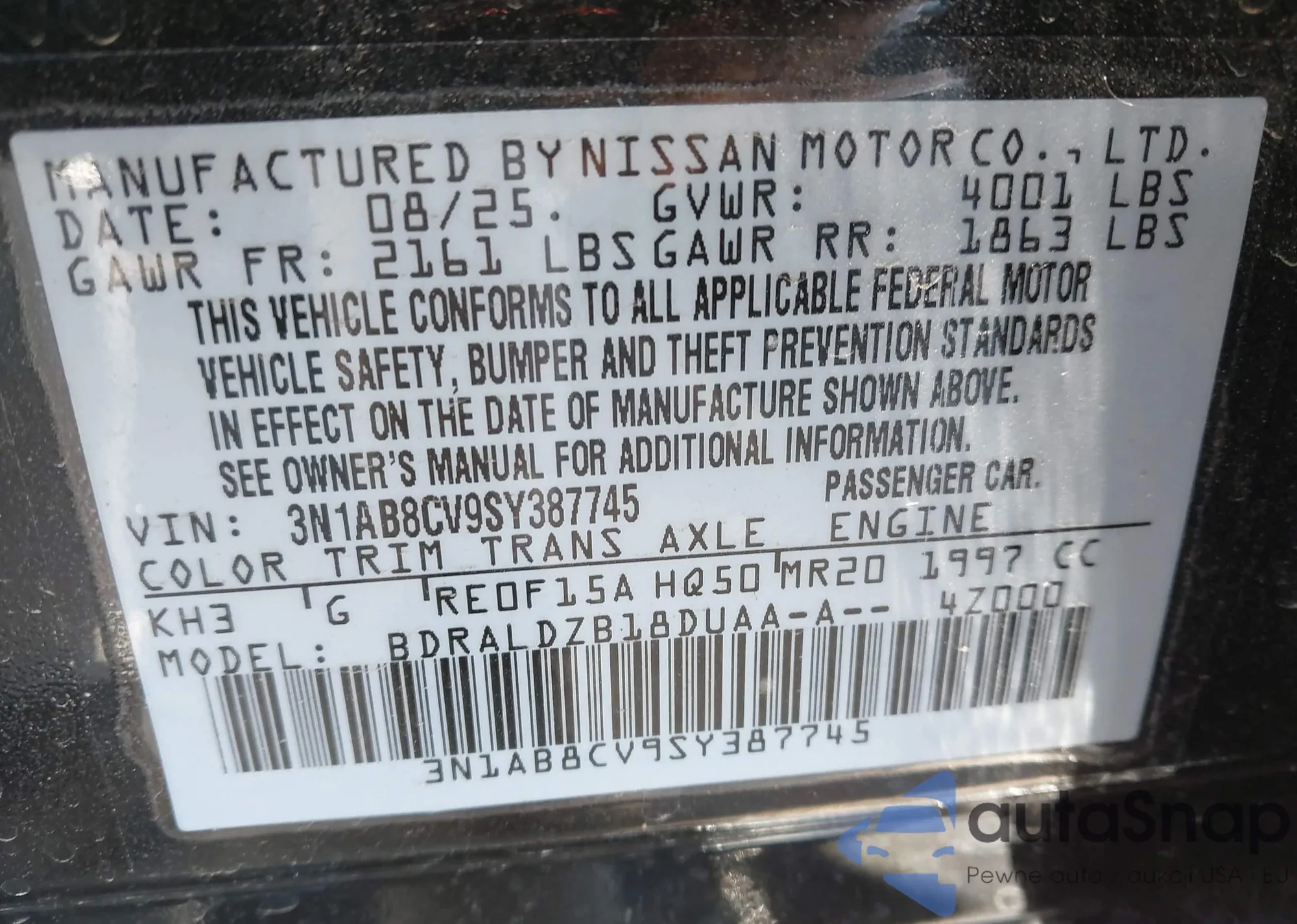 • VIN 3N1AB8CV9SY387745