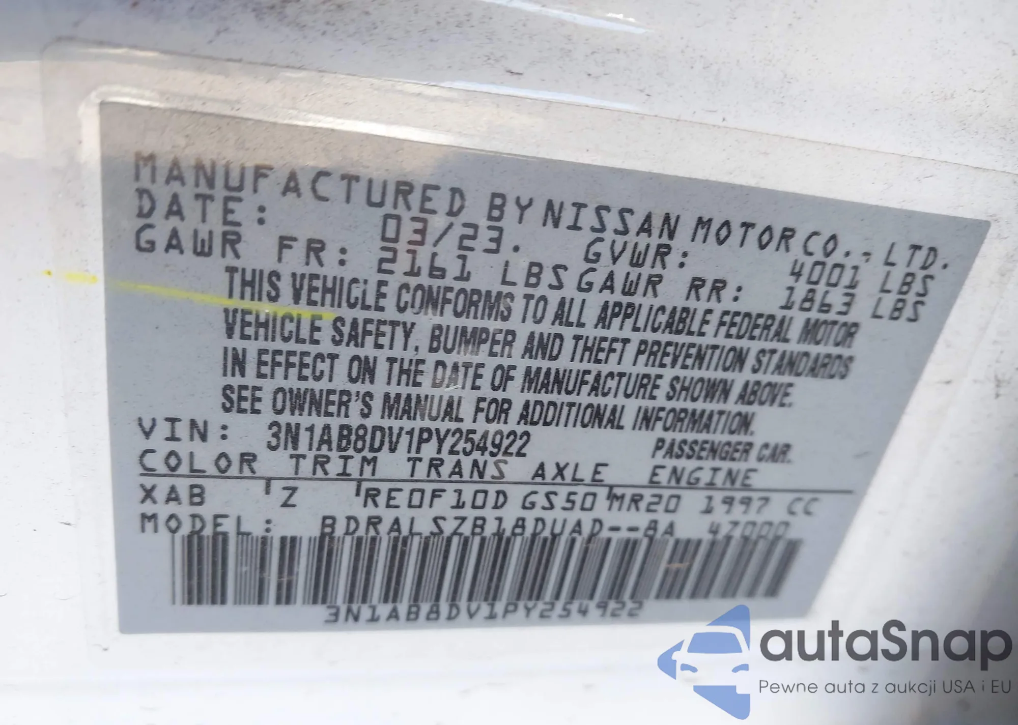 LOT: 44155176 VIN: 3N1AB8DV7PY327498