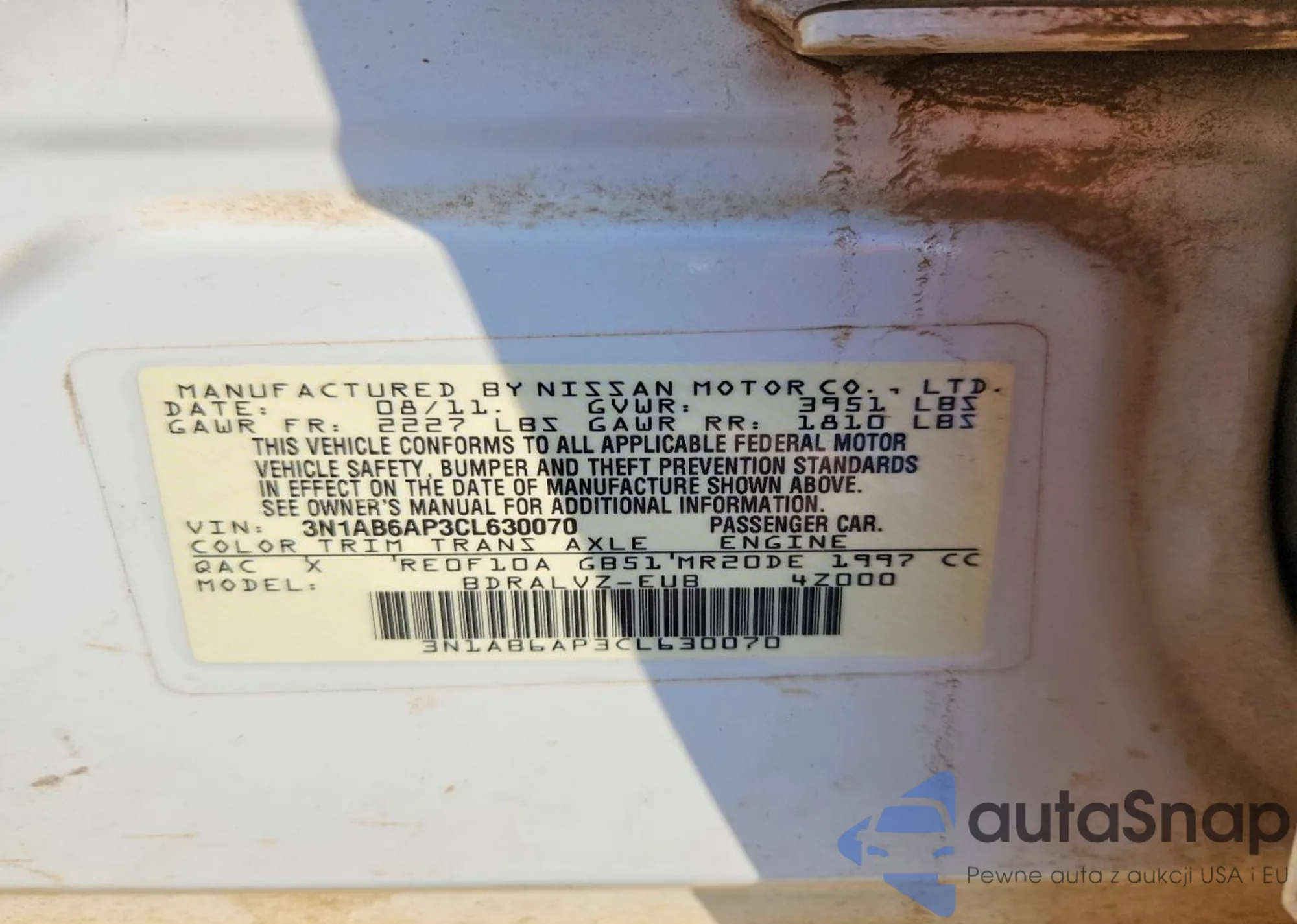 • VIN 3N1AB6AP3CL630070
