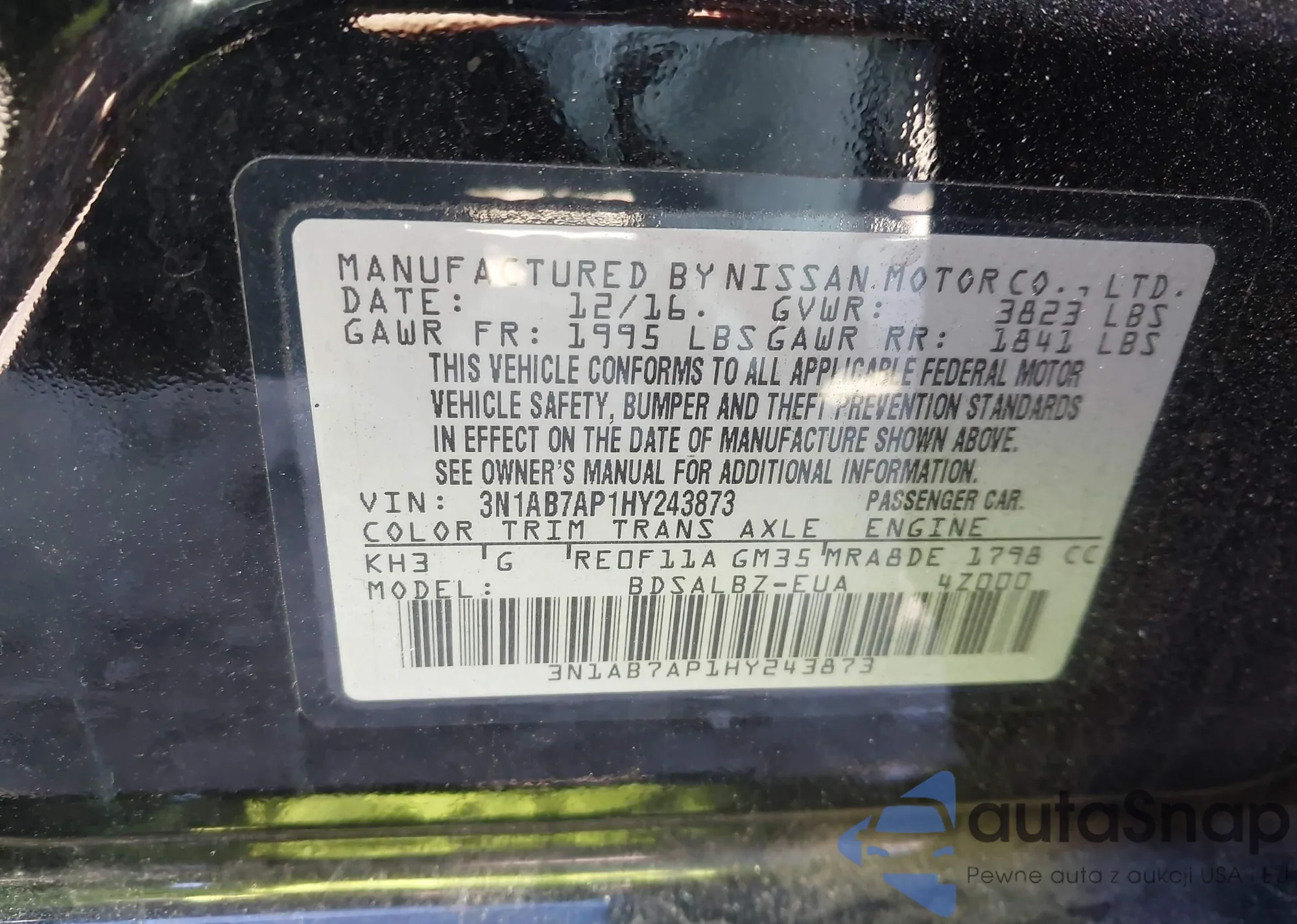 • VIN 3N1AB7AP1HY243873
