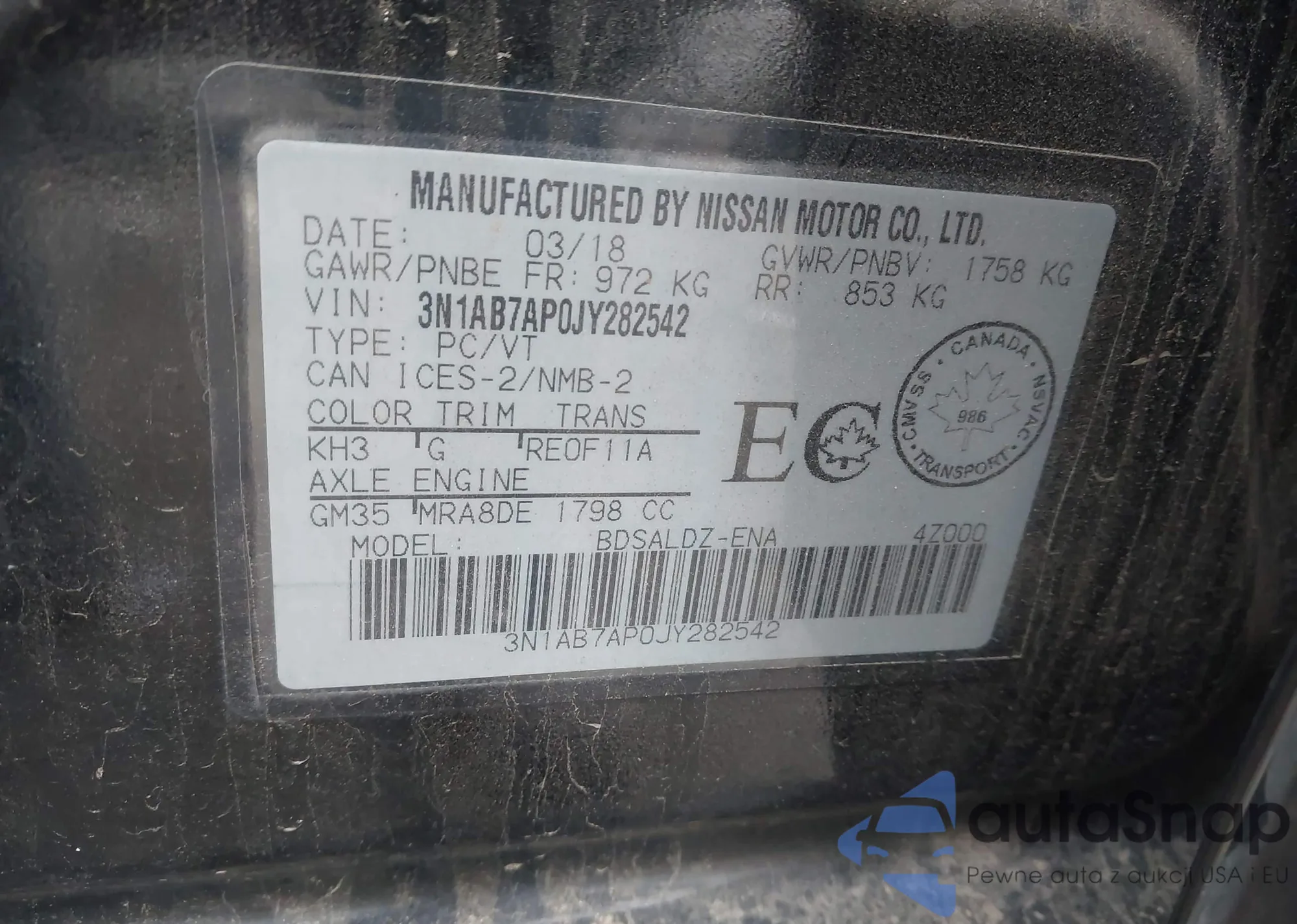 • VIN 3N1AB7AP0JY282542