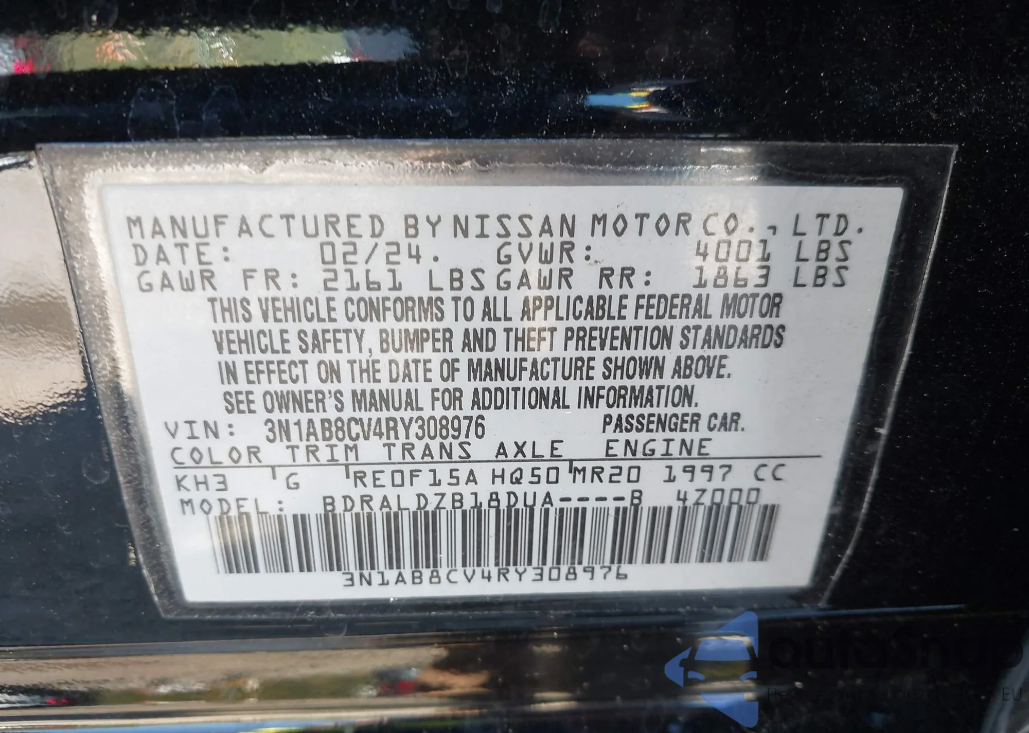 • VIN 3N1AB8CV4RY308976