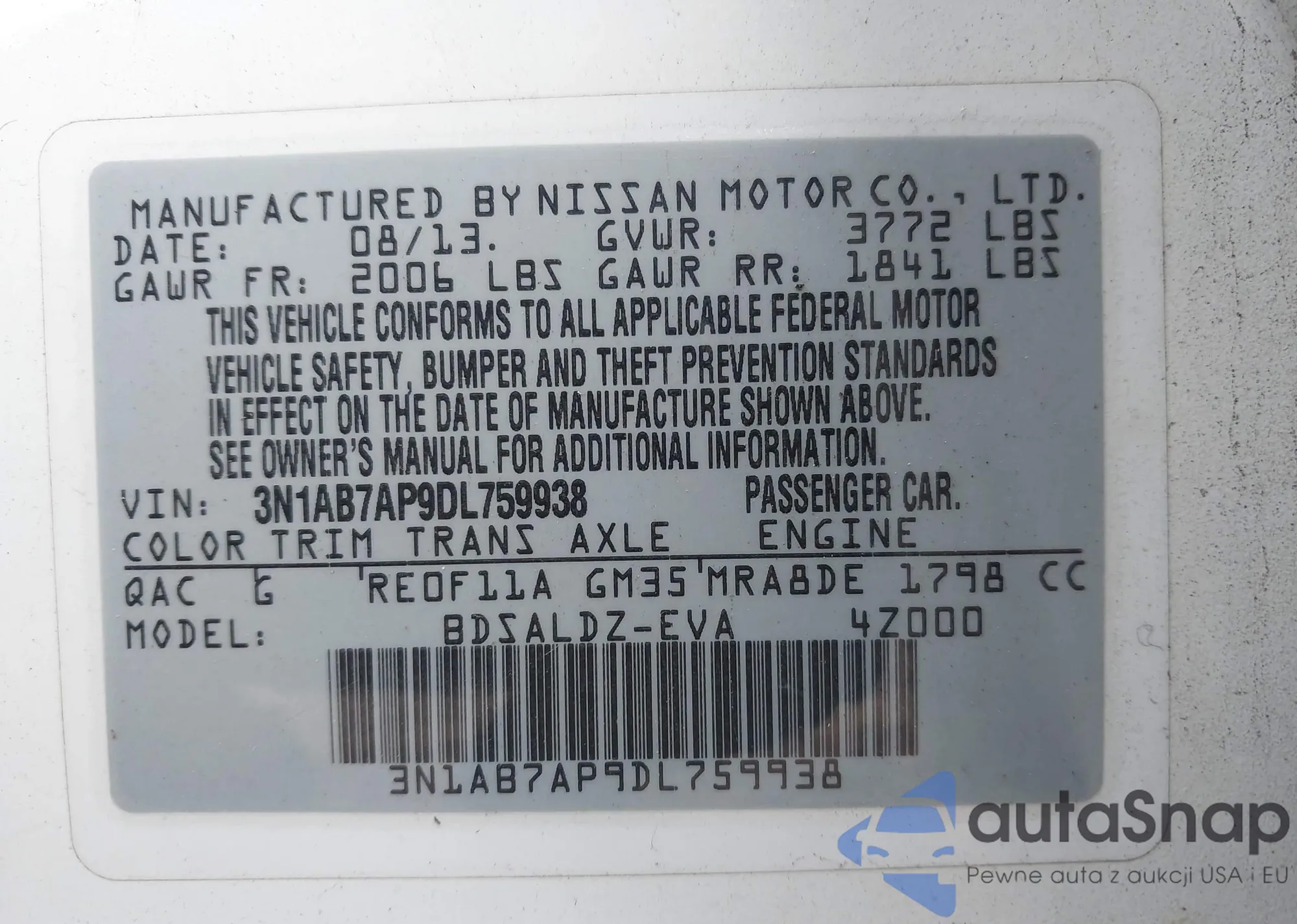 • VIN 3N1AB7AP9DL759938